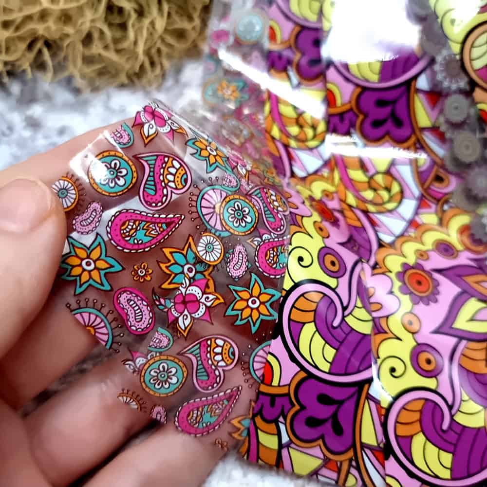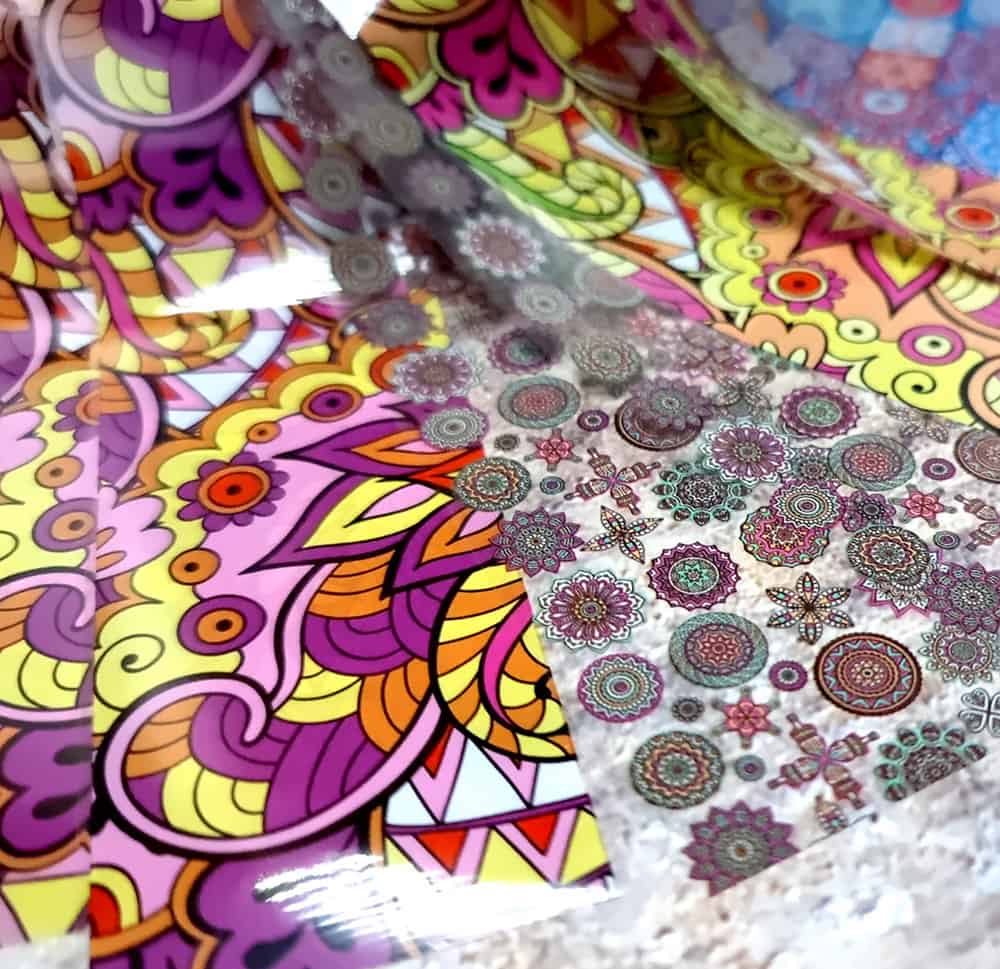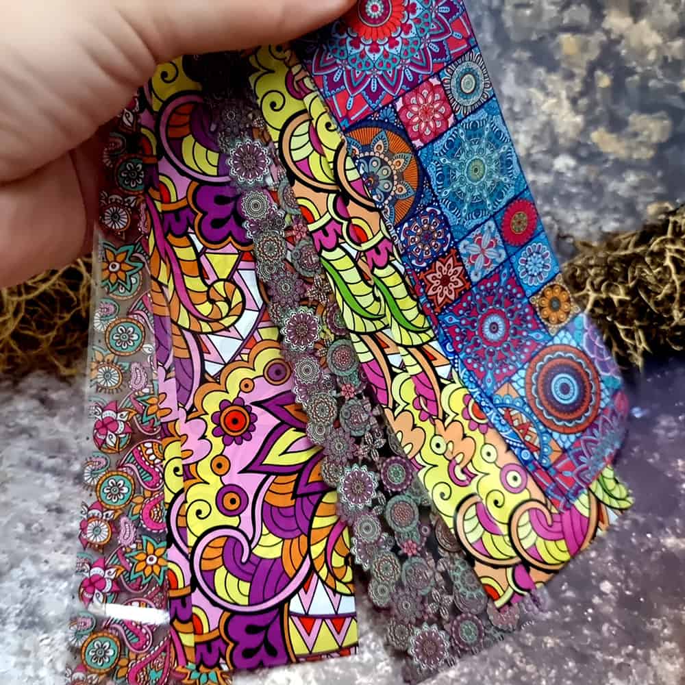 Set of 10 colorful Transfer Foils “Hippie style textile 3”