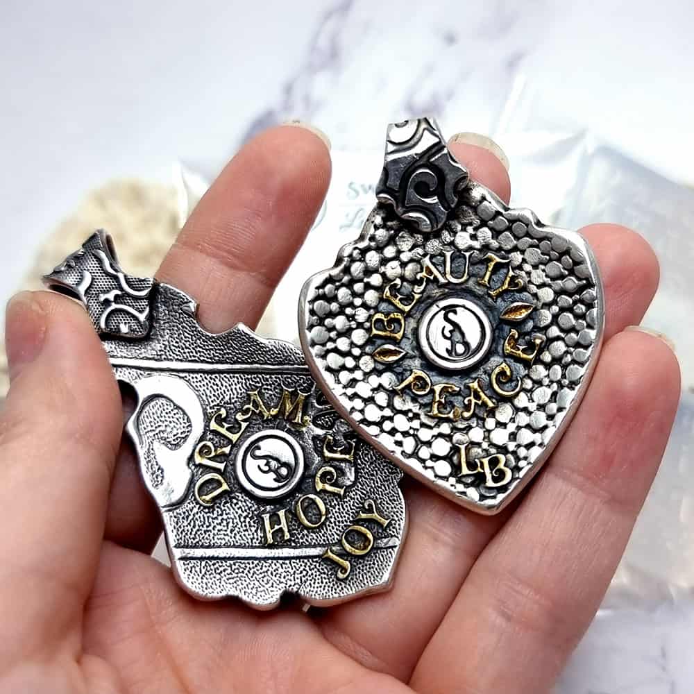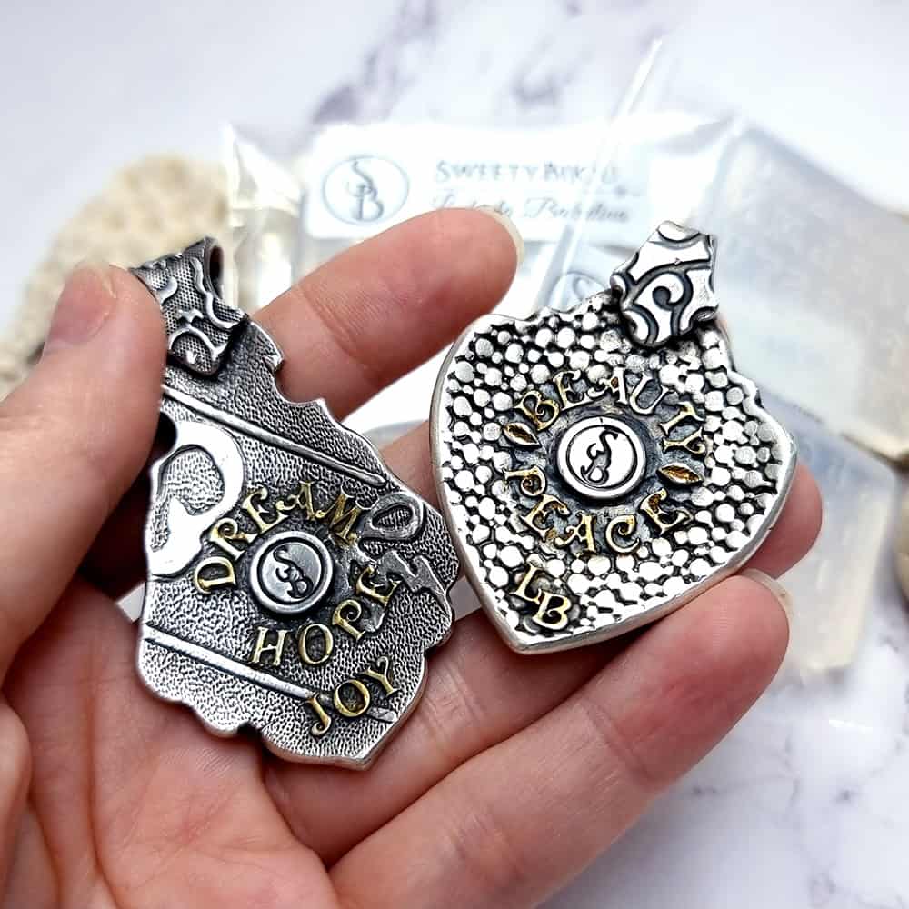 The molds can be used with polymer clay, liquid polymer clay, as well as with all kinds of metal clay. You also can use air-dry clay or porcelain clay to create tiny parts for miniature projects.