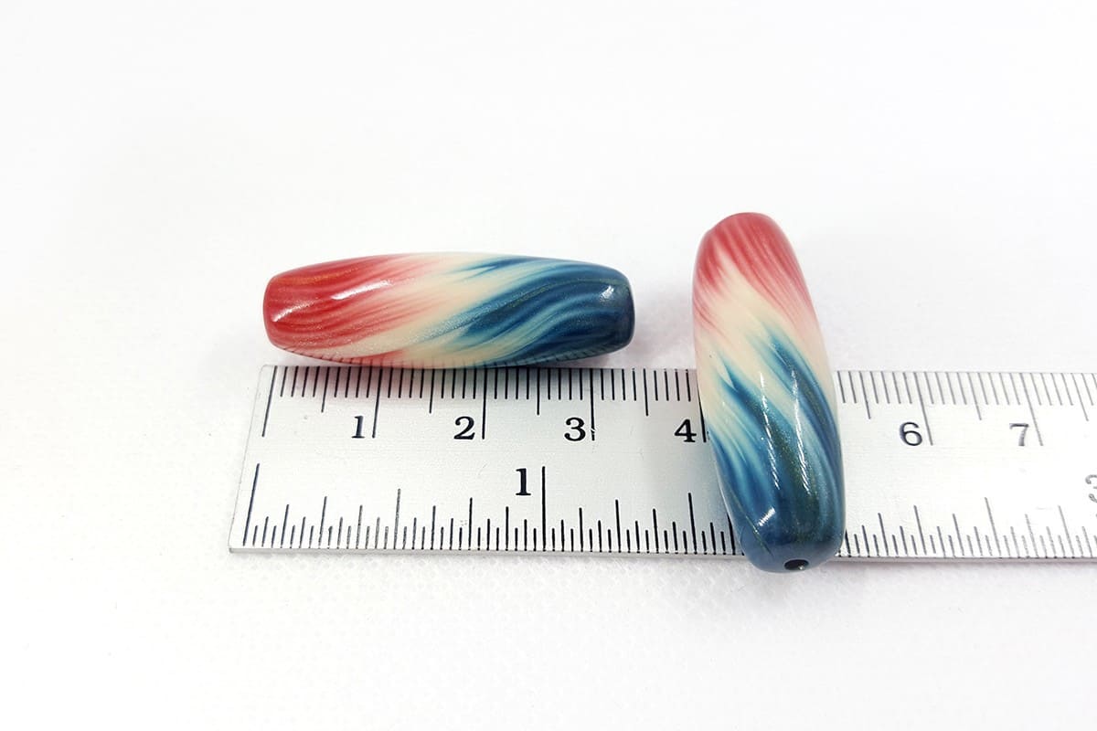 Handmade 2 Stretched Beads, Polymer Clay by Millefiori Technique