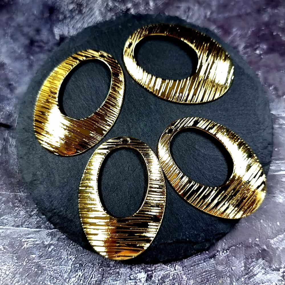 4 Glossy Golden color Charms “Ovals” – unusual high-quality earrings findings for your jewelry creations.
