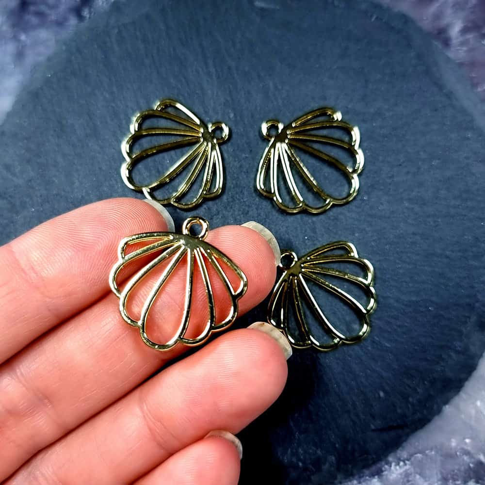 4 Glossy Golden color Charms “Shells” – unusual high-quality earrings findings for your jewelry creations.