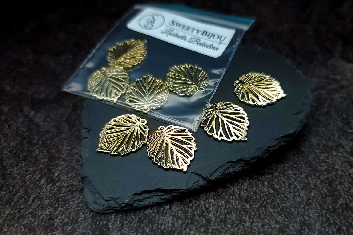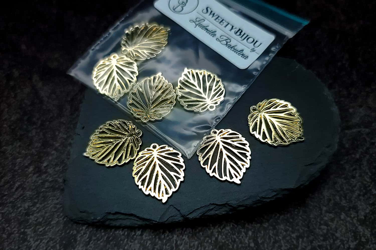 “4 small leafs charms for earrings, golden color” – unusual high-quality earrings findings for your jewelry creations.