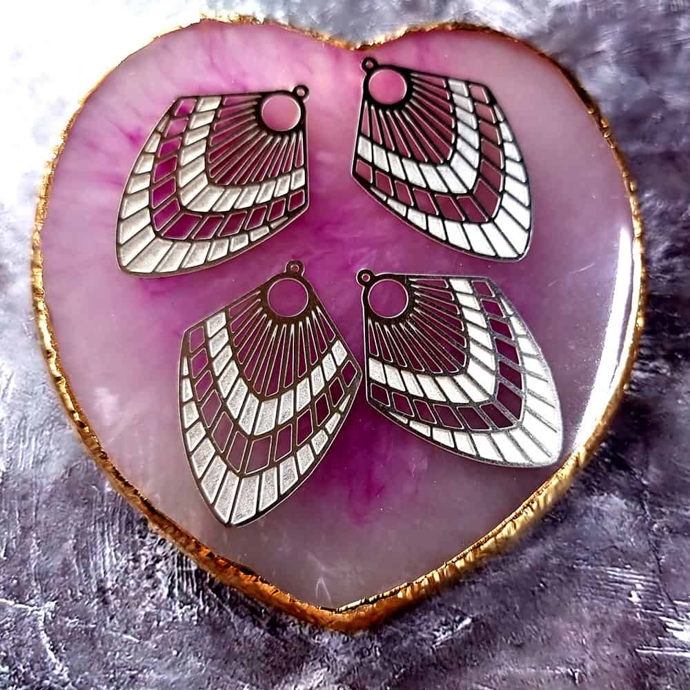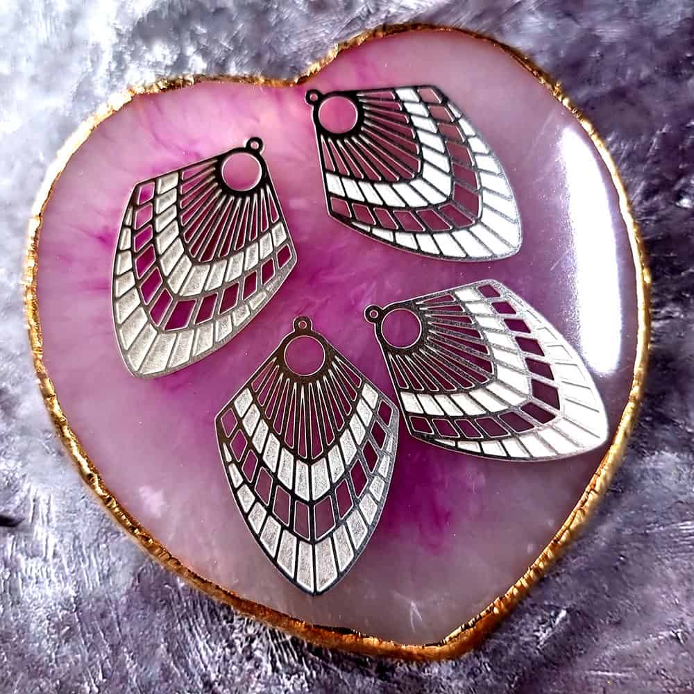 4 Stainless steel Charms “Silver Feathers” – unusual high-quality earrings findings for your jewelry creations.