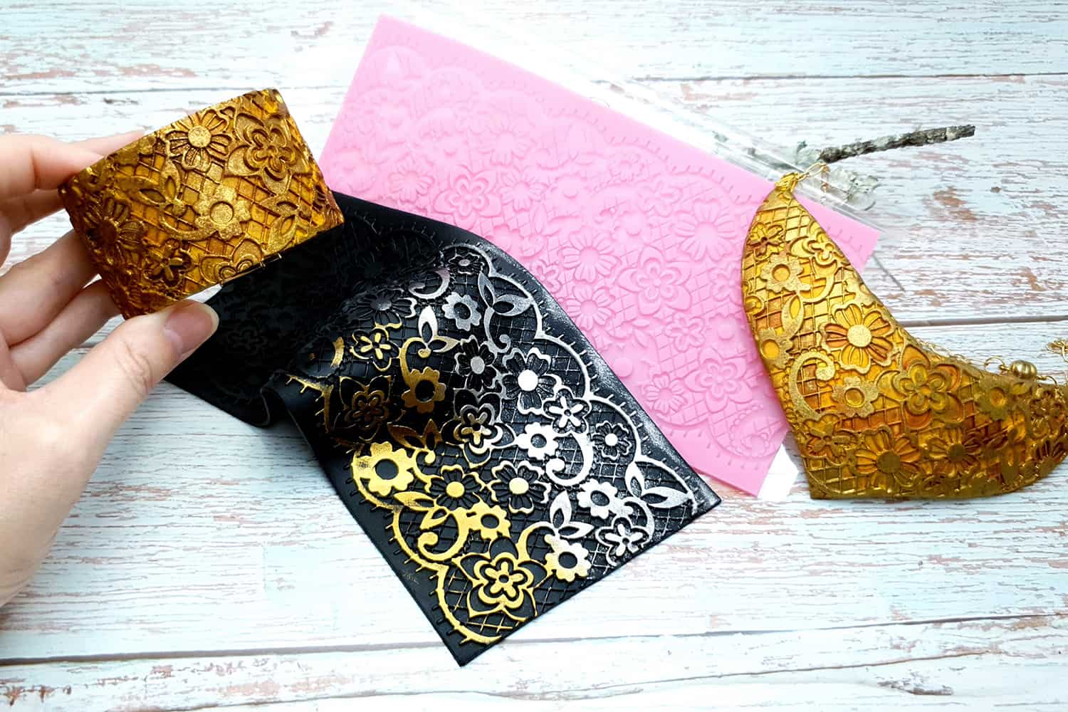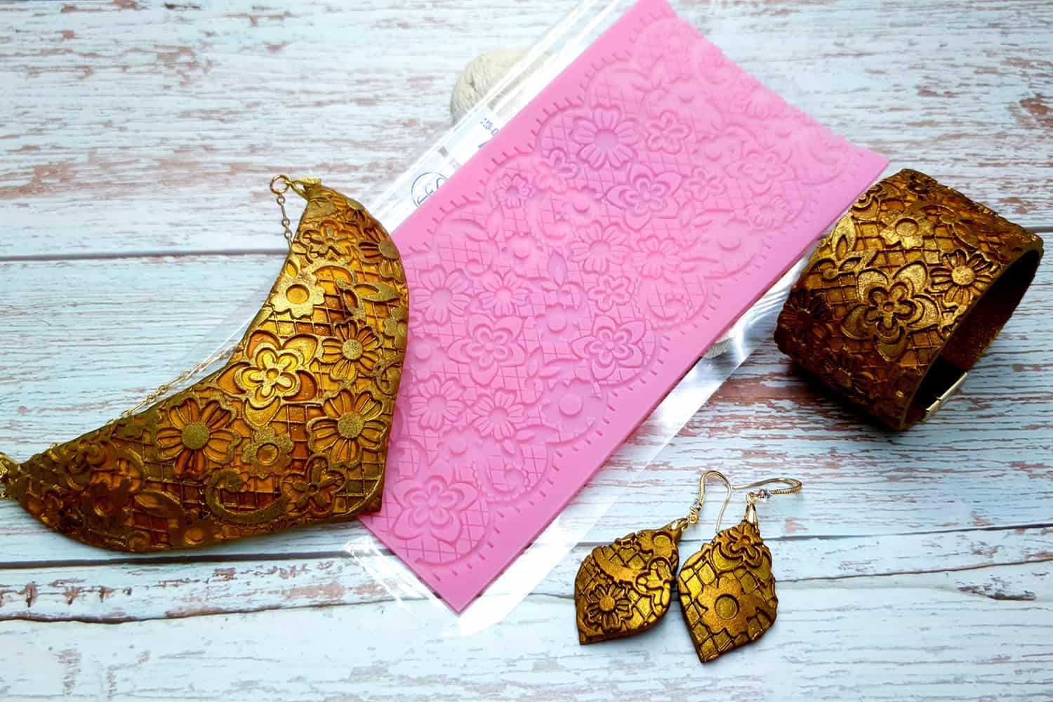This high-quality lace silicone texture is very easy to use and you can easily create any unique jewelry, like: