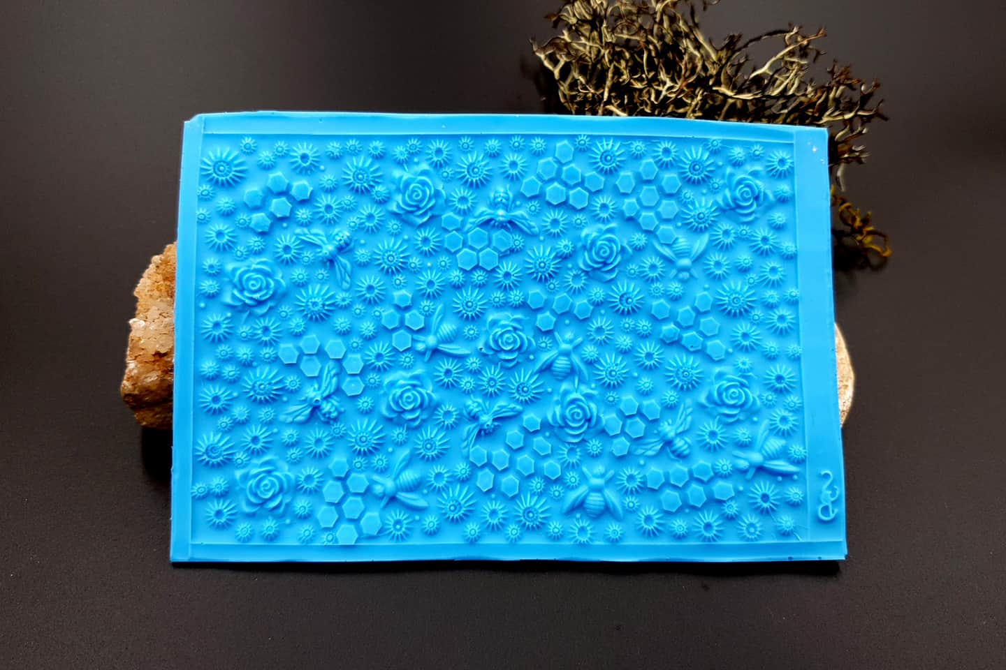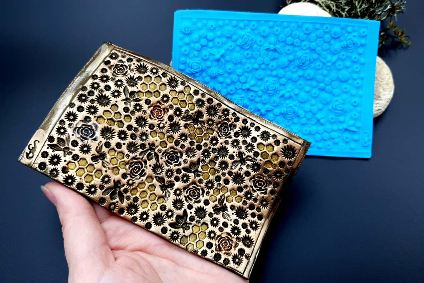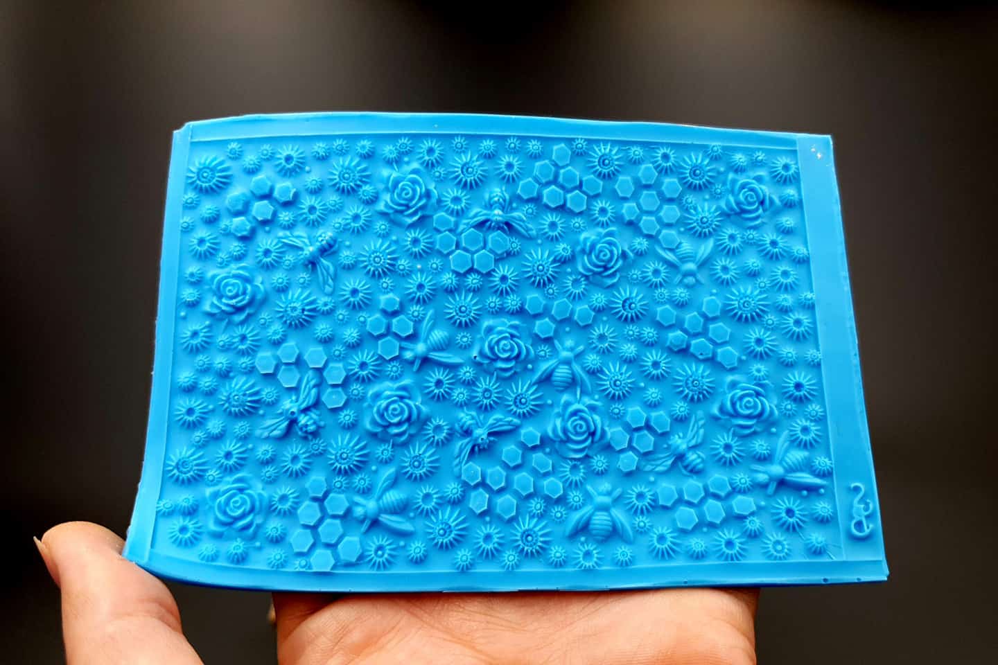 I made this texture from silicone which is flexible and does not require a release agent. It can be baked at a temperature of 150’C and can be used with all brands of polymer clay (preferably recommended a SOFT clay).