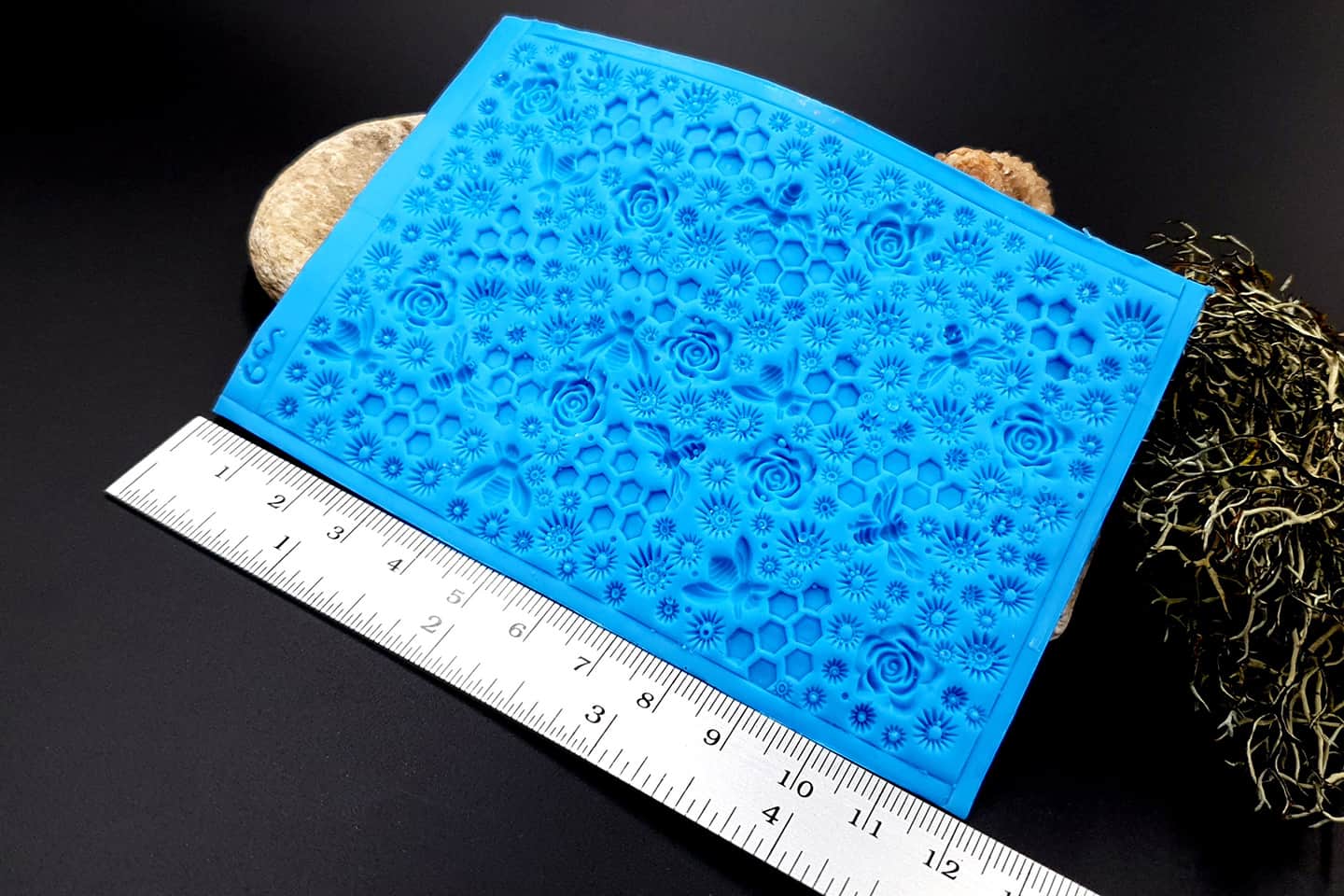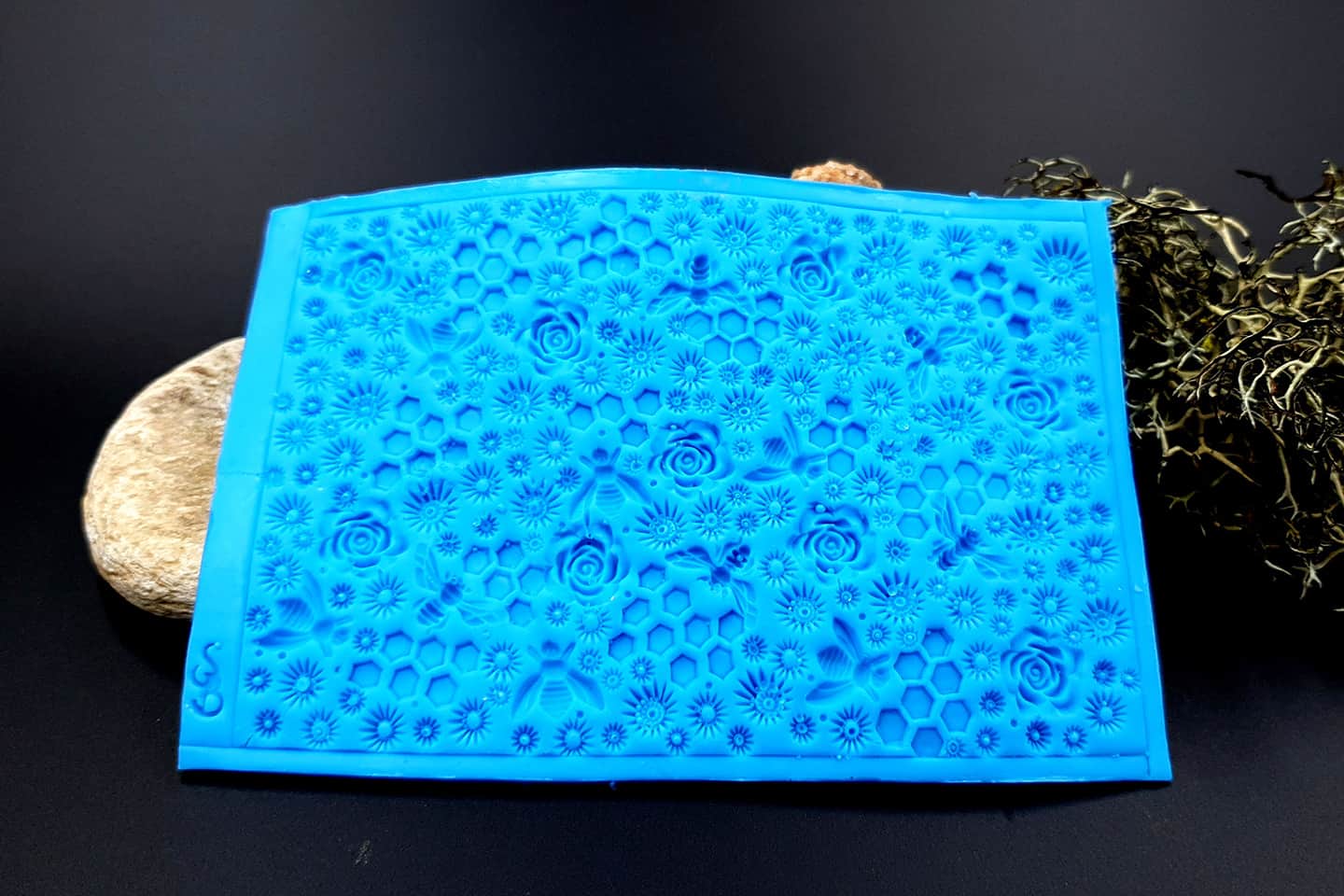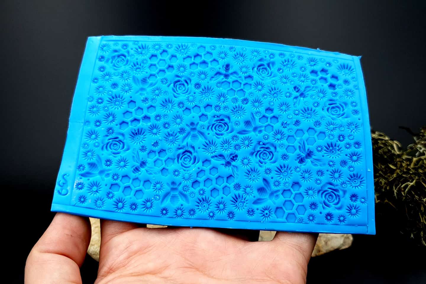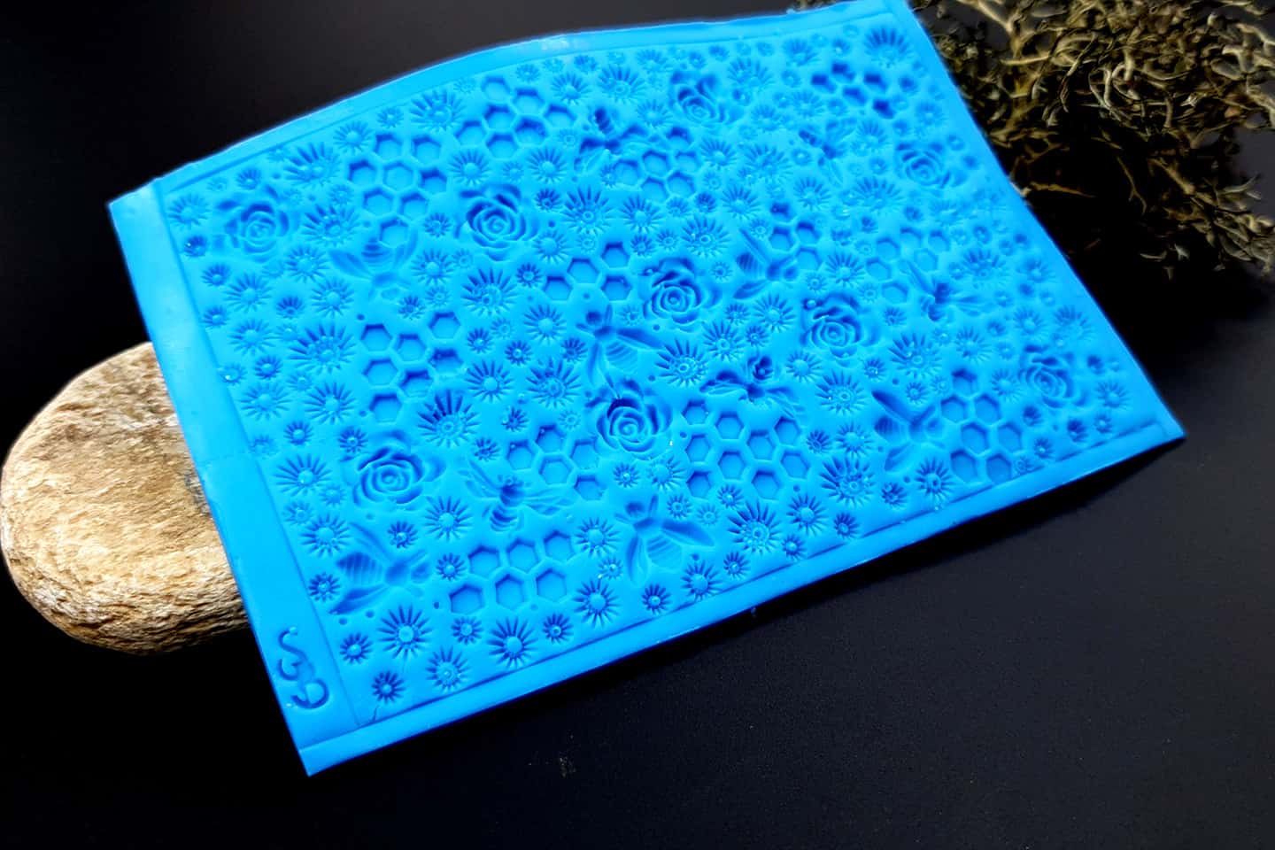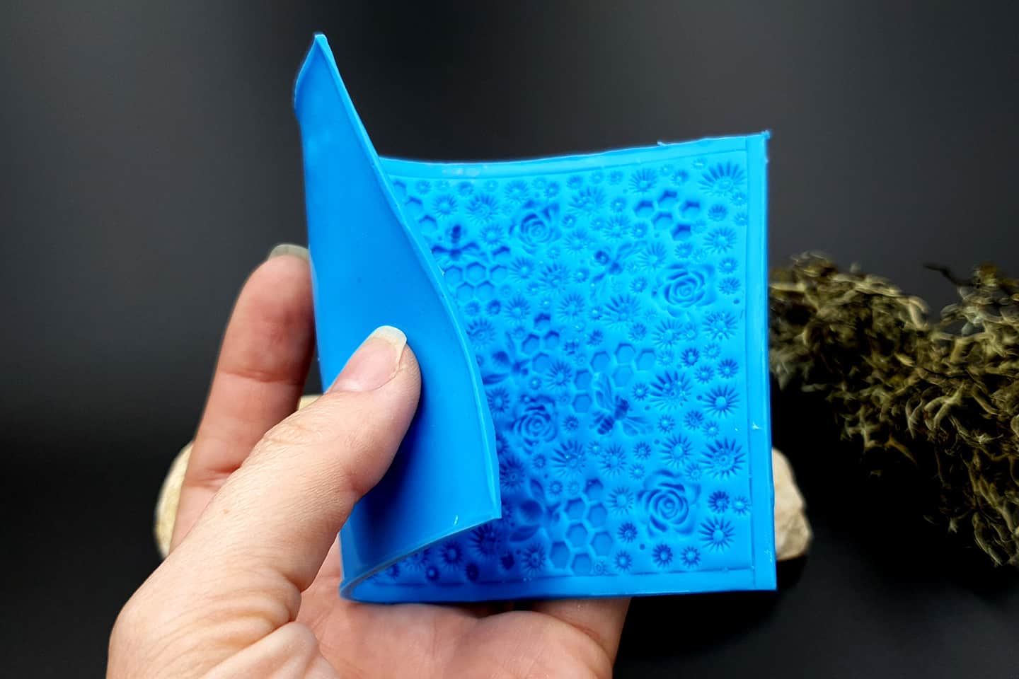 I made this texture from silicone which is flexible and does not require a release agent. It can be baked at a temperature of 150’C and can be used with all brands of polymer clay (preferably recommended a SOFT clay).