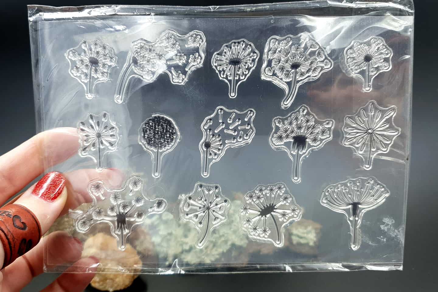 Clear silicone stamp “Dandelions” is a great tool for your polymer clay projects like jewelry making, home decor projects, or miniature dollhouse projects.