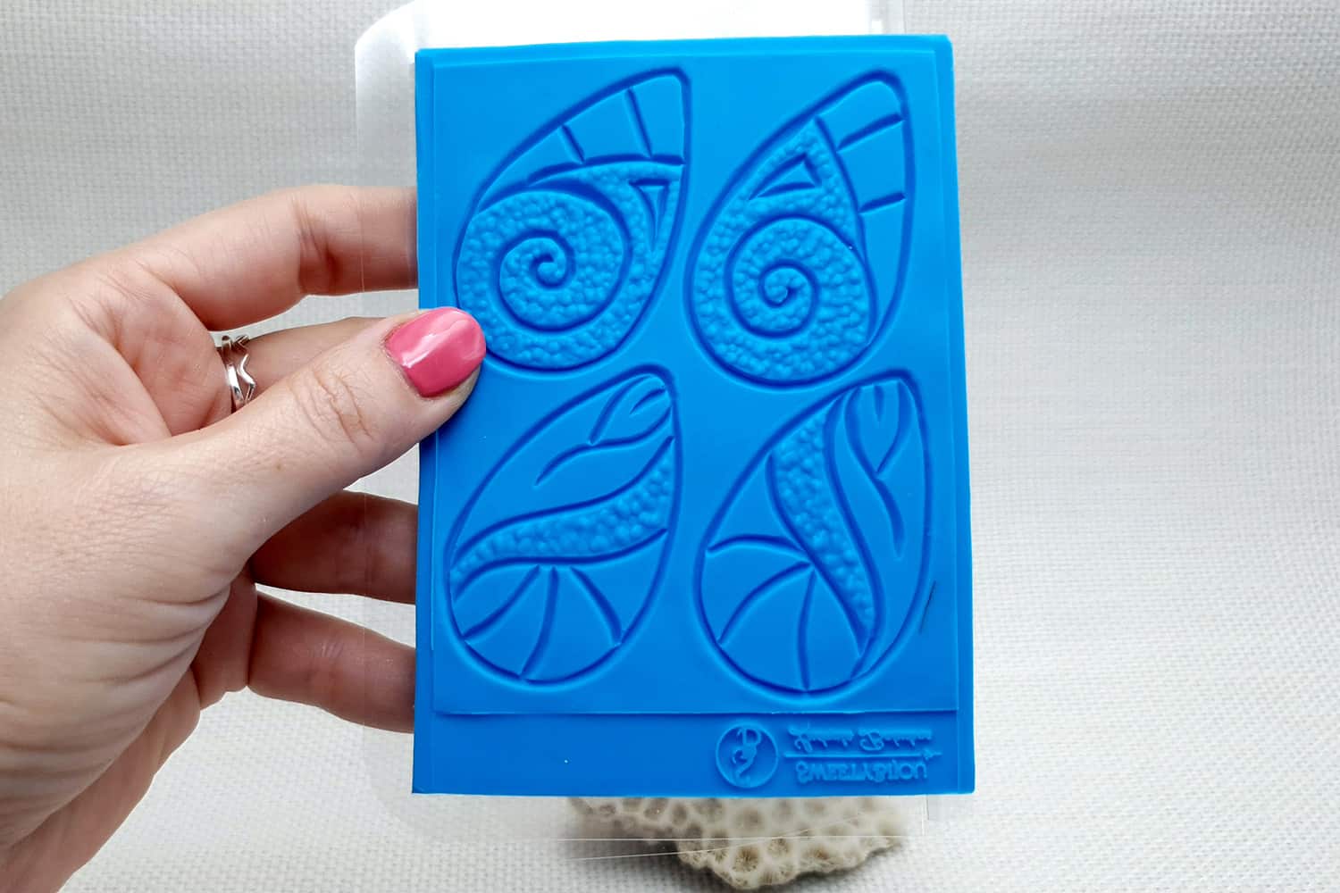 I made this texture from silicone which is flexible and does not require a release agent. It can be baked at a temperature of 150’C and can be used with all brands of polymer clay (preferably recommended a SOFT clay).