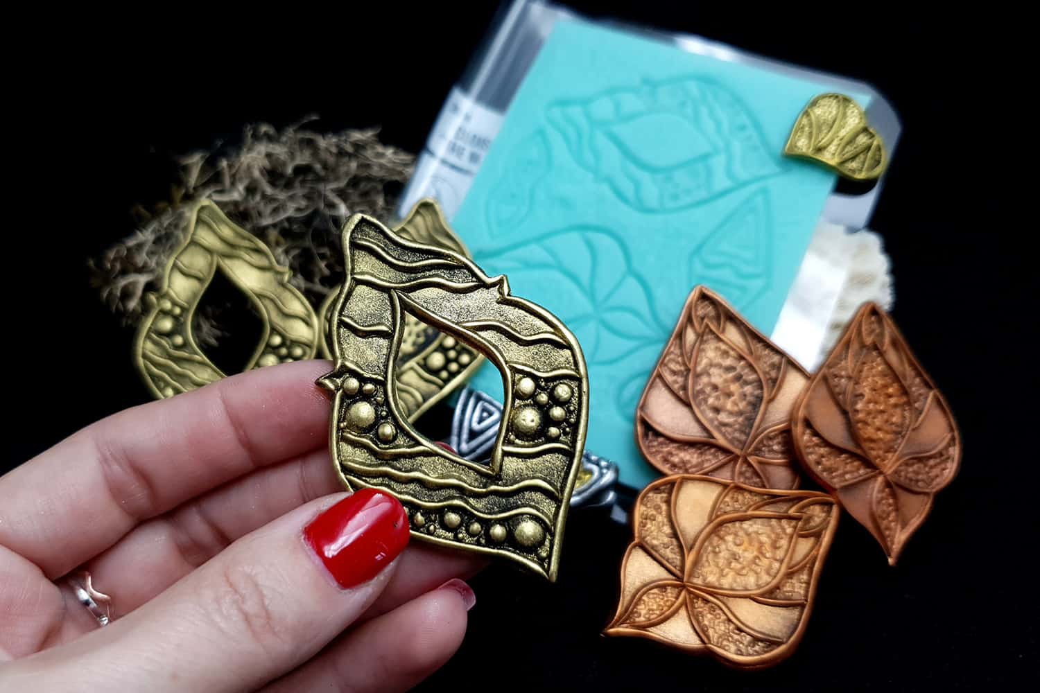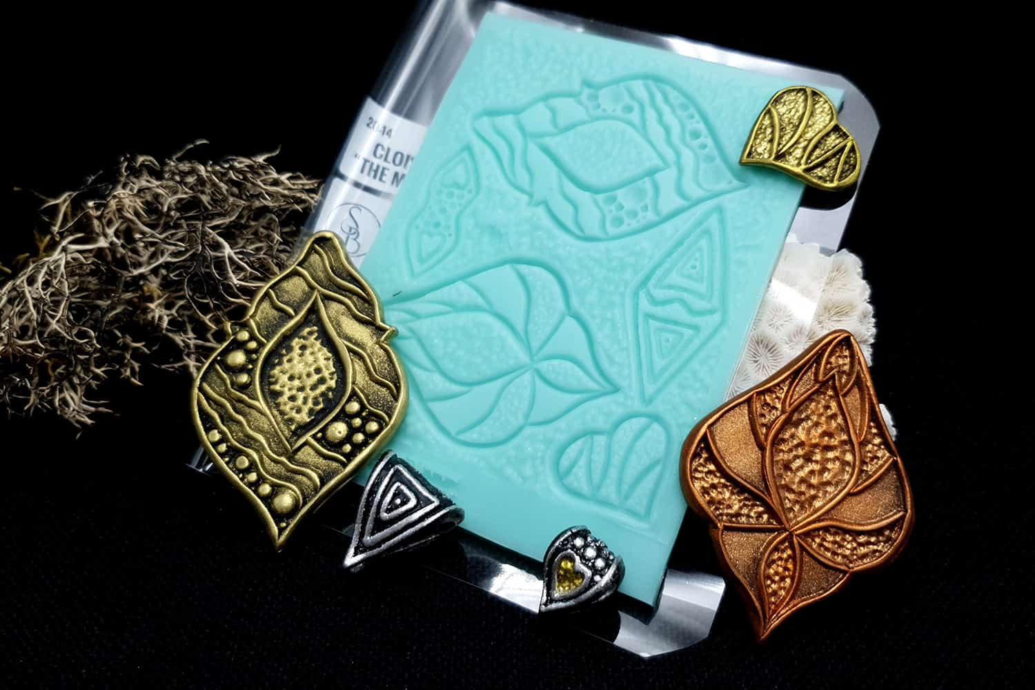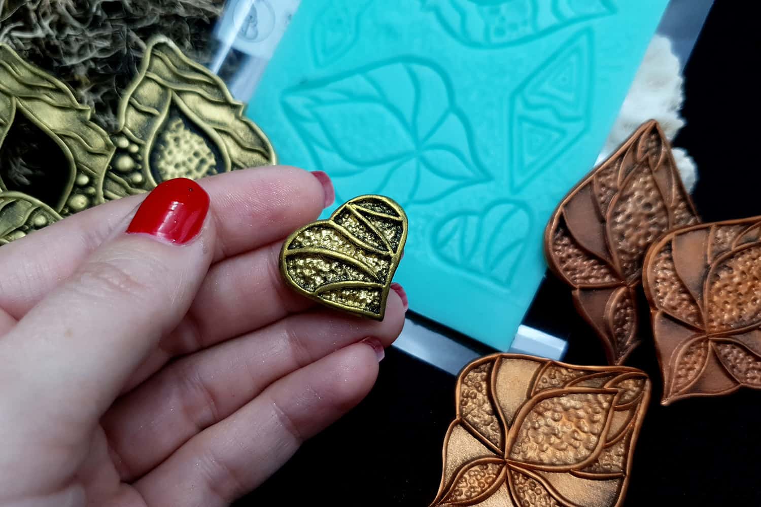 I made this texture from silicone which is flexible and does not require a release agent. It can be baked at a temperature of 150’C and can be used with all brands of polymer clay (preferably recommended a SOFT clay).