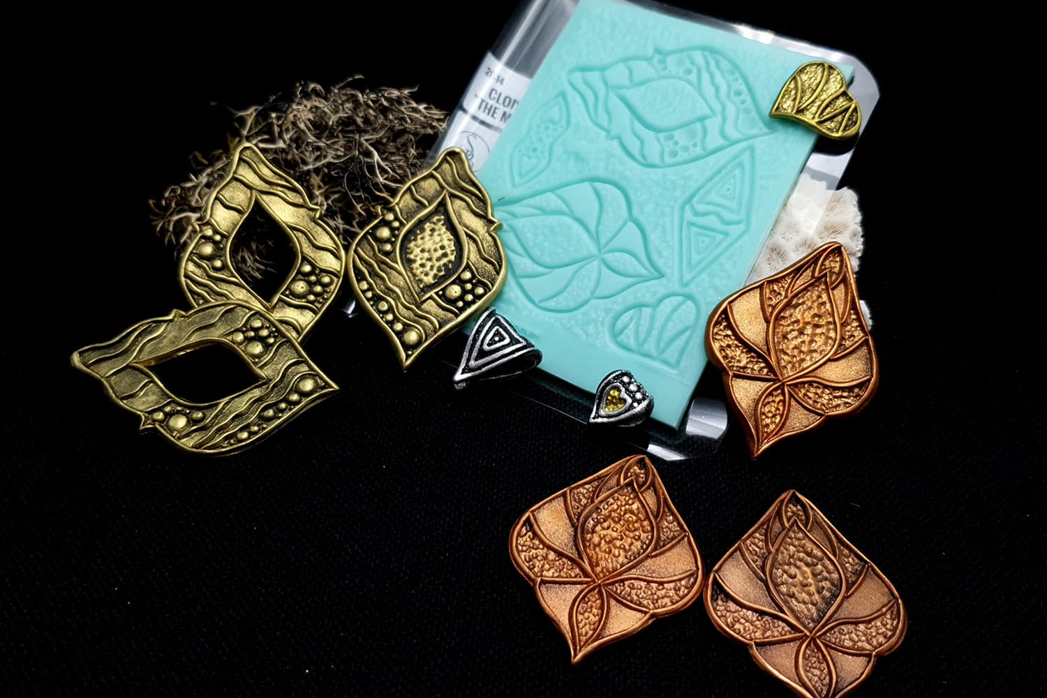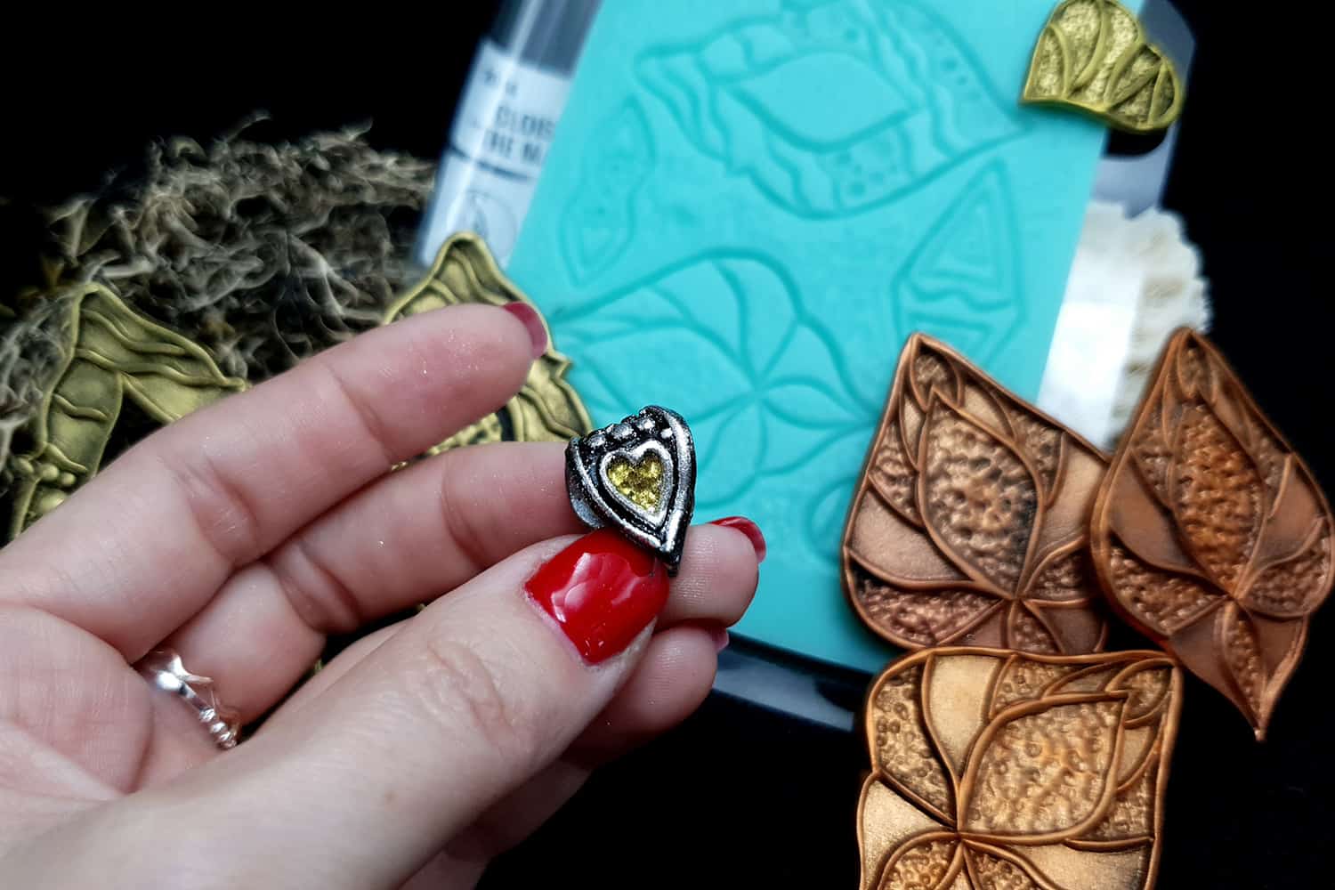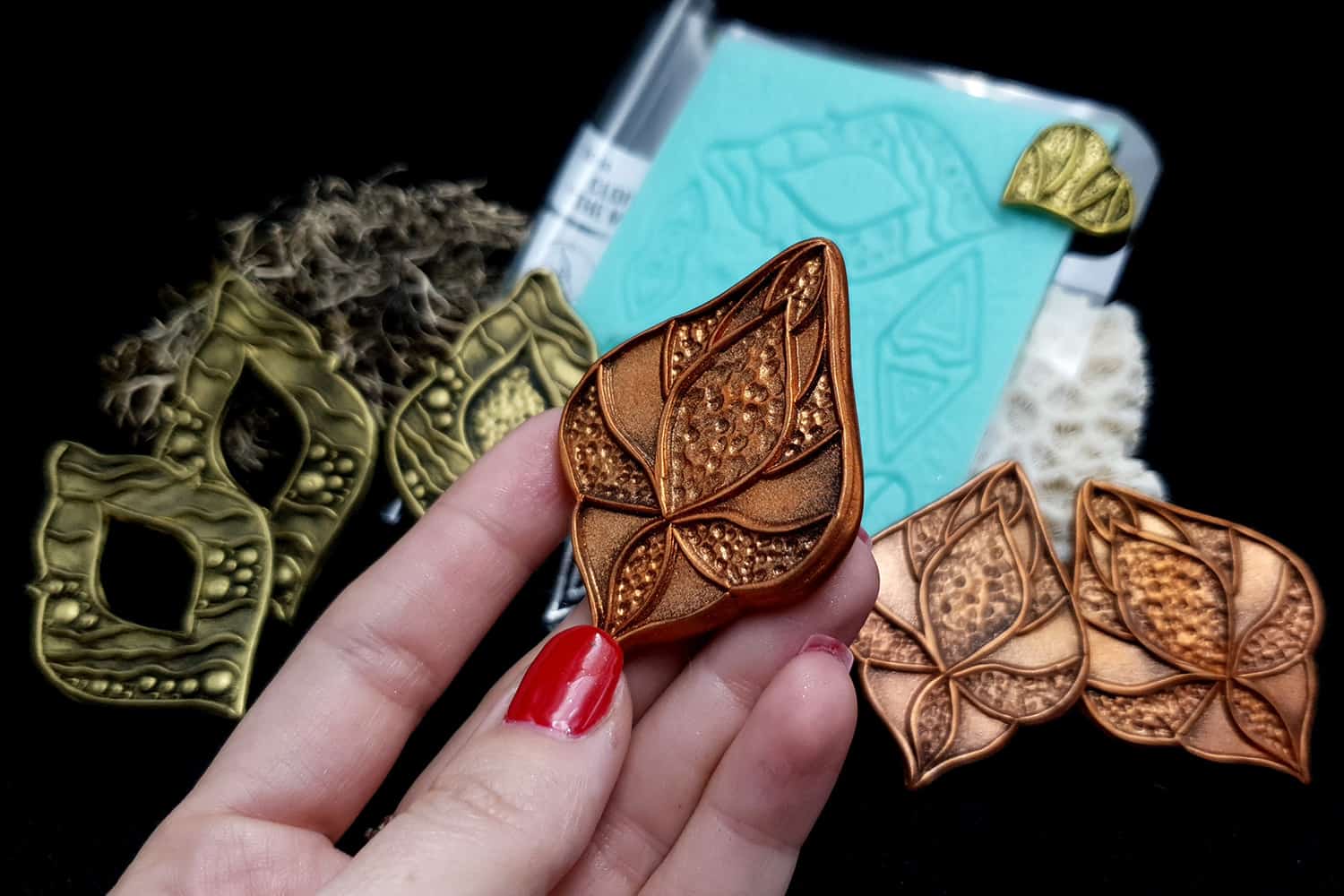 I made this texture from silicone which is flexible and does not require a release agent. It can be baked at a temperature of 150’C and can be used with all brands of polymer clay (preferably recommended a SOFT clay).