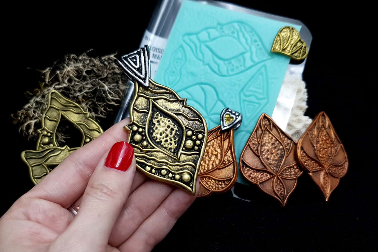 This high-quality handmade silicone texture is very easy to use (for soft clay) and you can easily create any unique jewelry, like:
