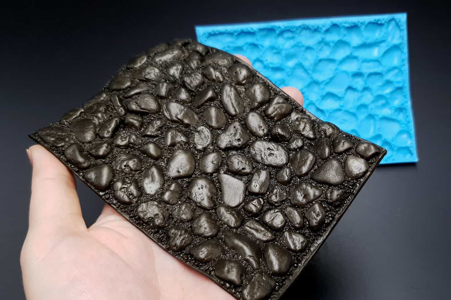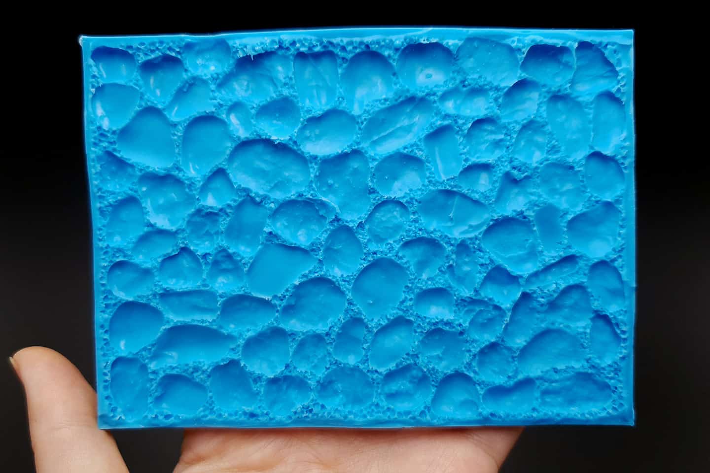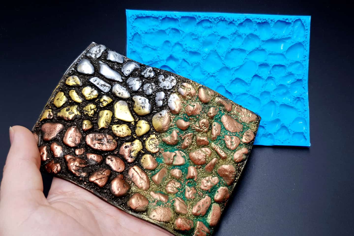 I made this texture from silicone which is flexible and does not require a release agent. It can be baked at a temperature of 150’C and can be used with all brands of polymer clay (preferably recommended a SOFT clay).
