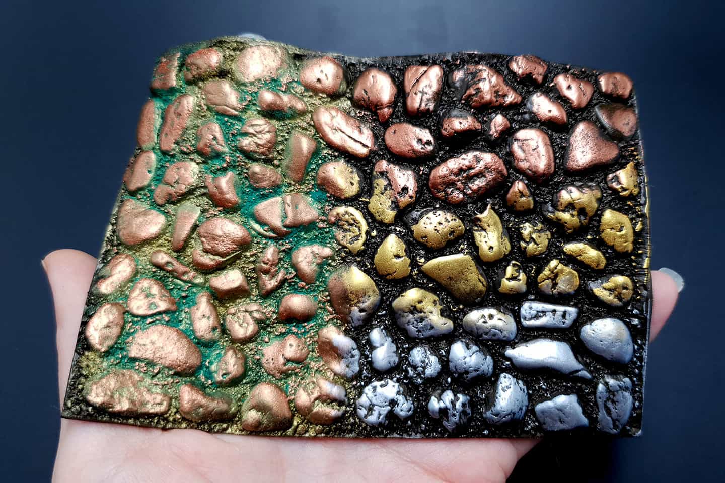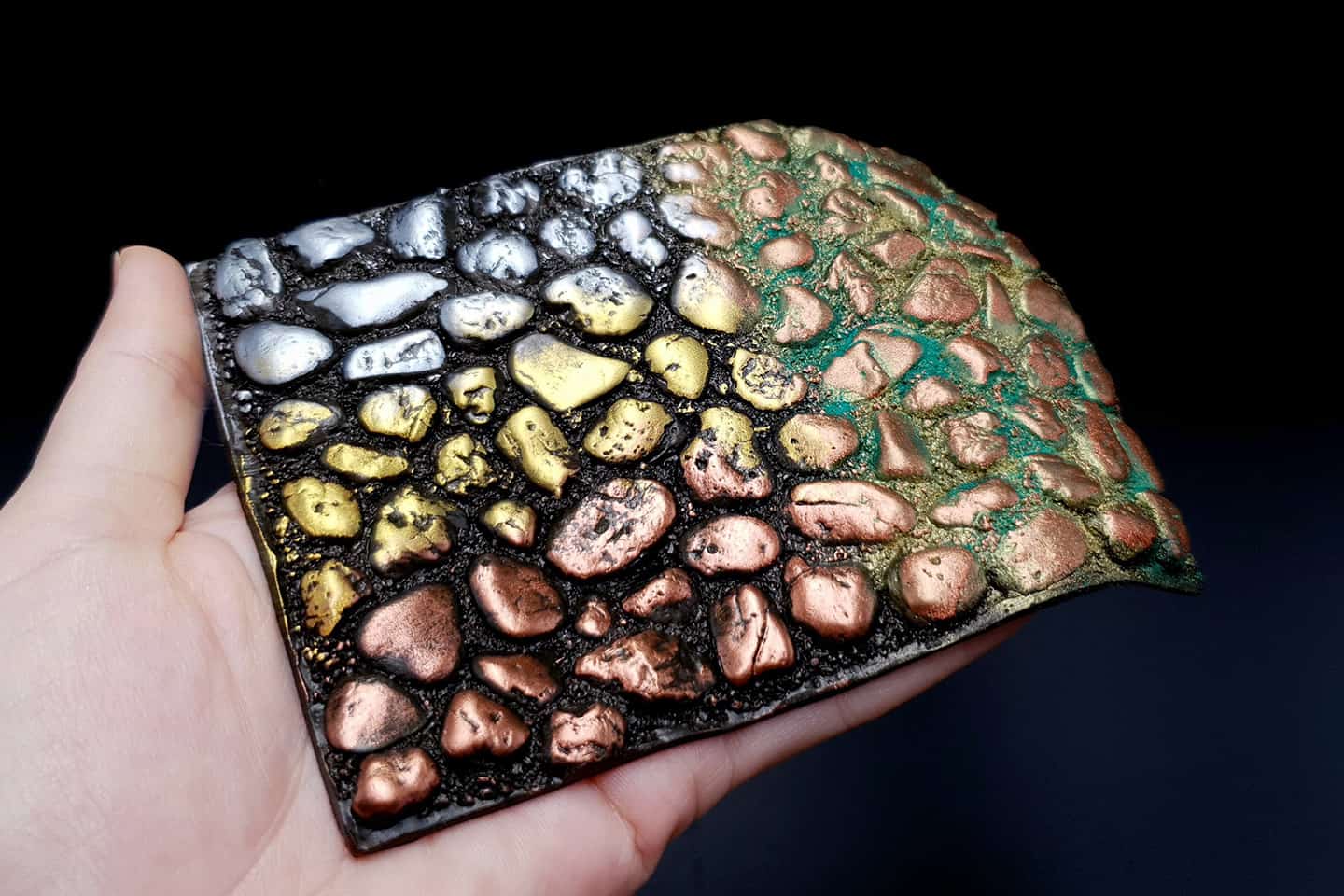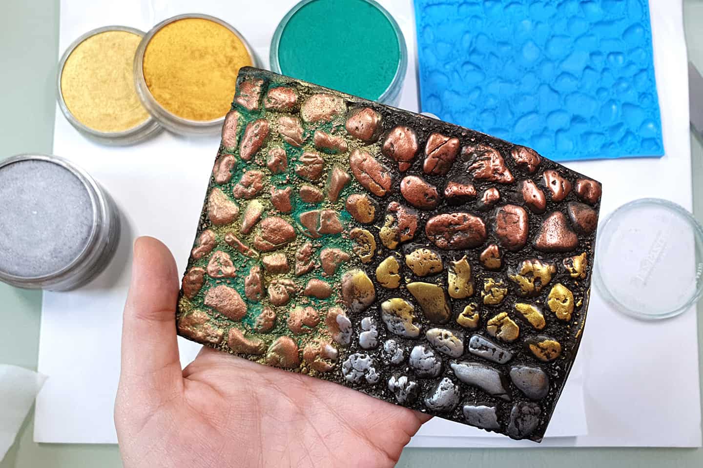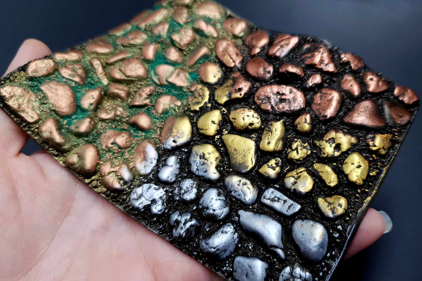 I made this texture from silicone which is flexible and does not require a release agent. It can be baked at a temperature of 150’C and can be used with all brands of polymer clay (preferably recommended a SOFT clay).