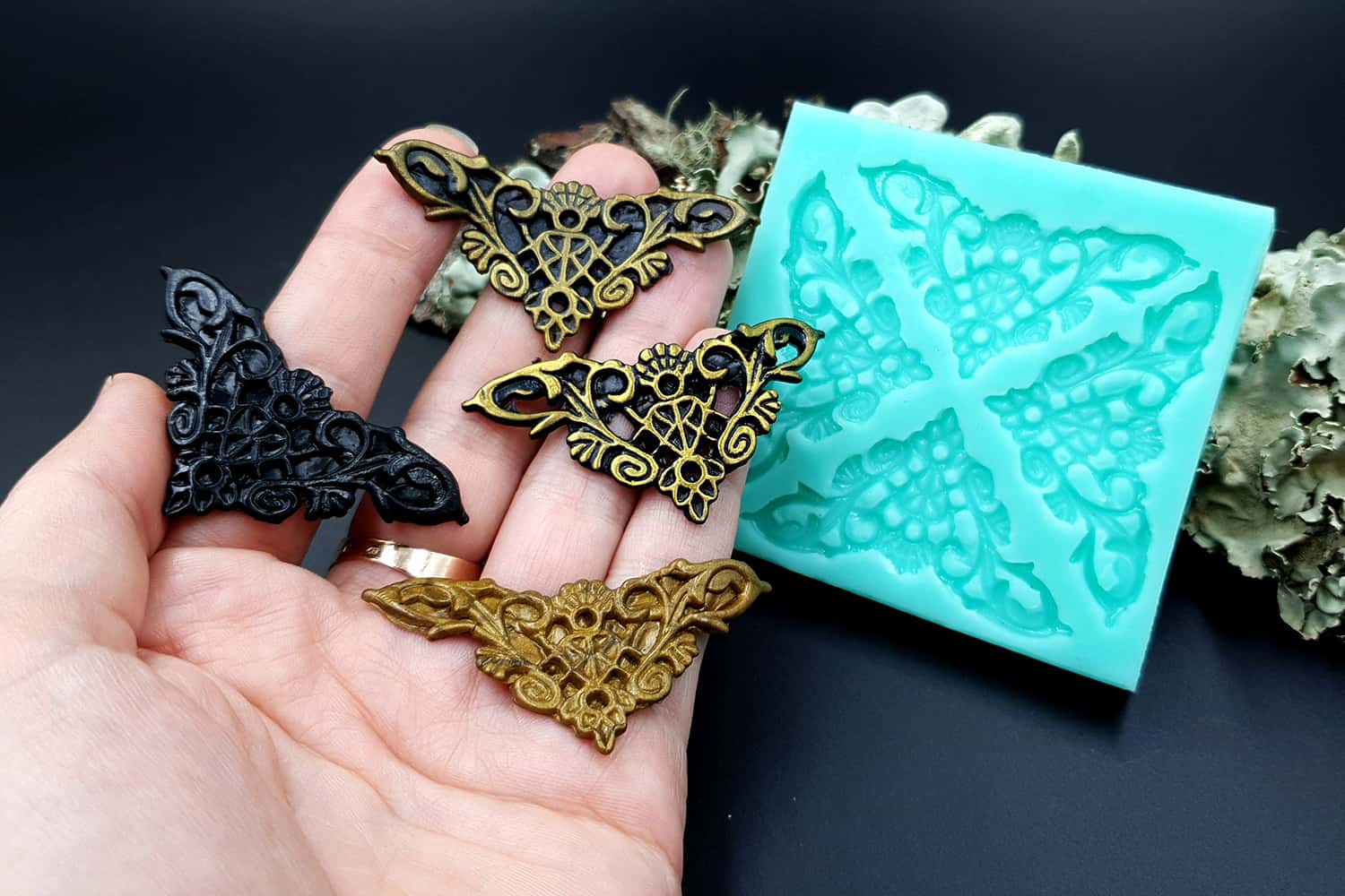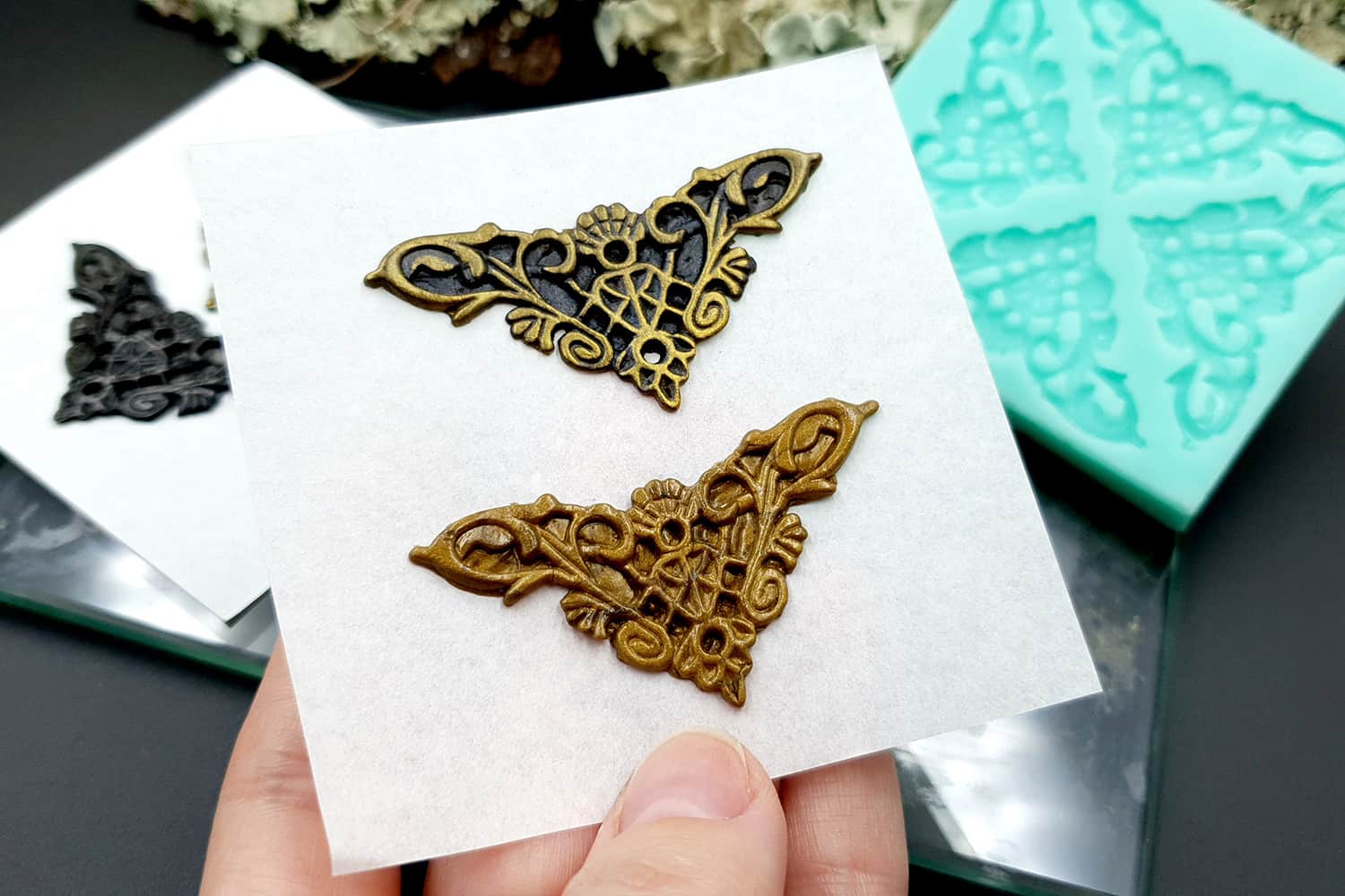 Antique Book Cover Corner, Box Protector, Embellishment Triangle Corners Silicone Mold – Flexible Handmade Mold – SweetyBijou Tools, Polymer Clay, Precious Metal Clay, Ceramic