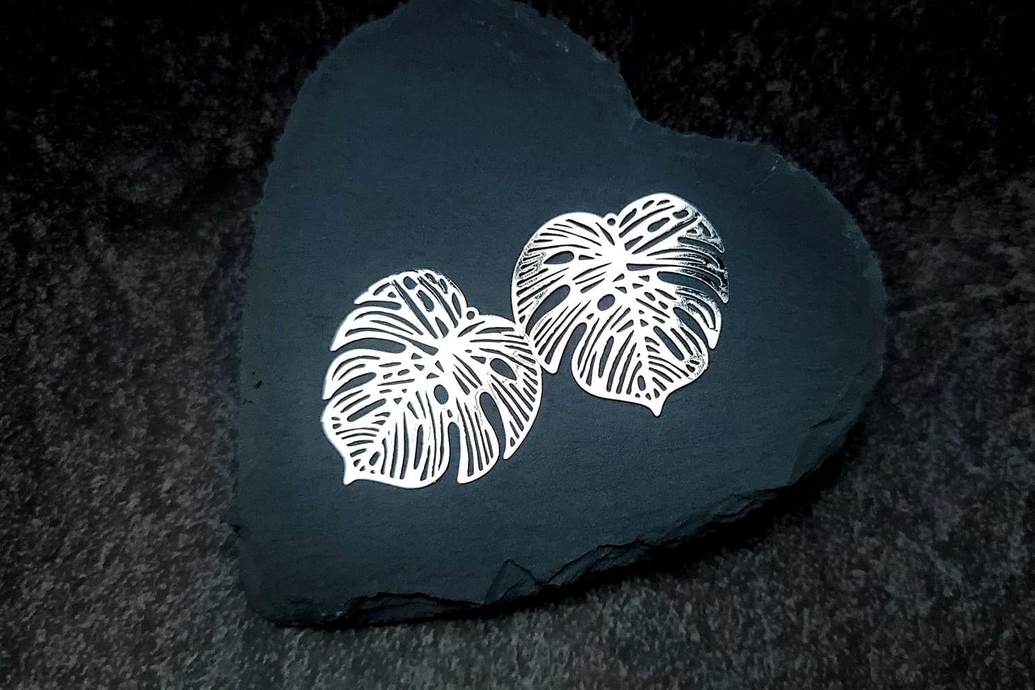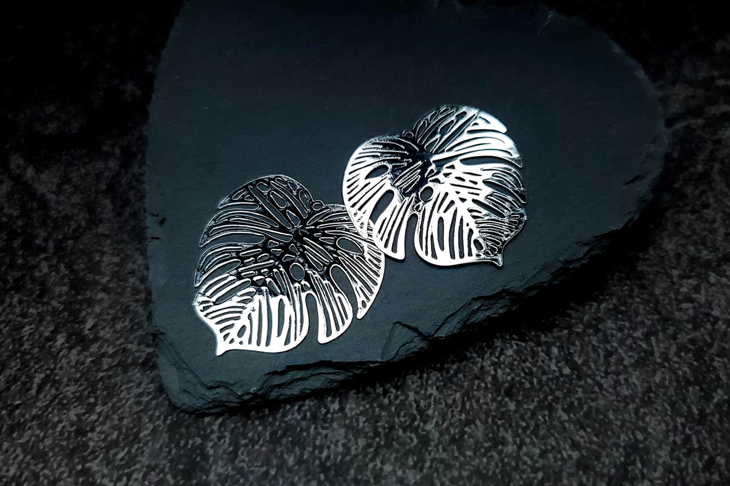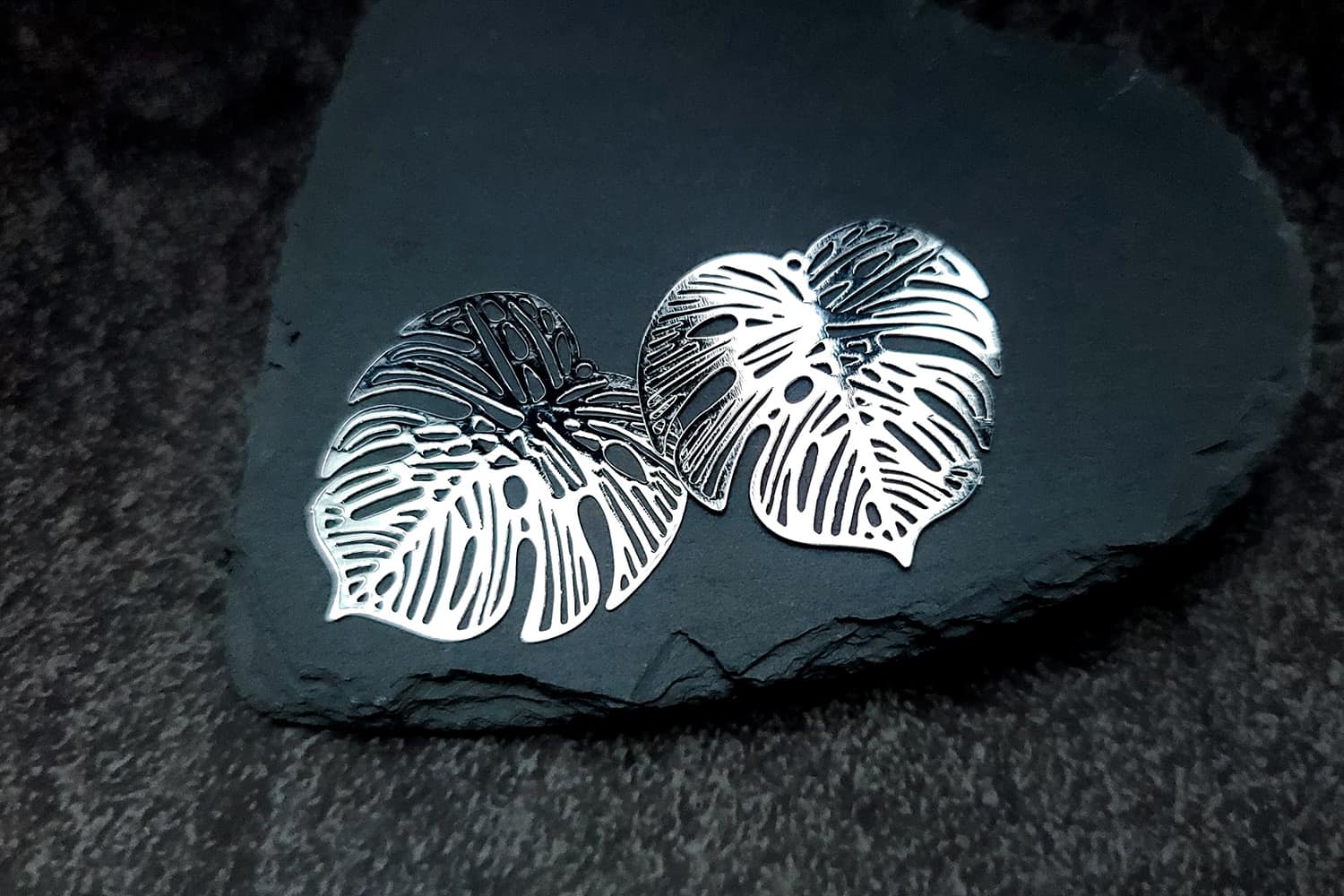 “Pair of silver color exotic leafs charms for earrings” – unusual high-quality earrings findings for your jewelry creations.