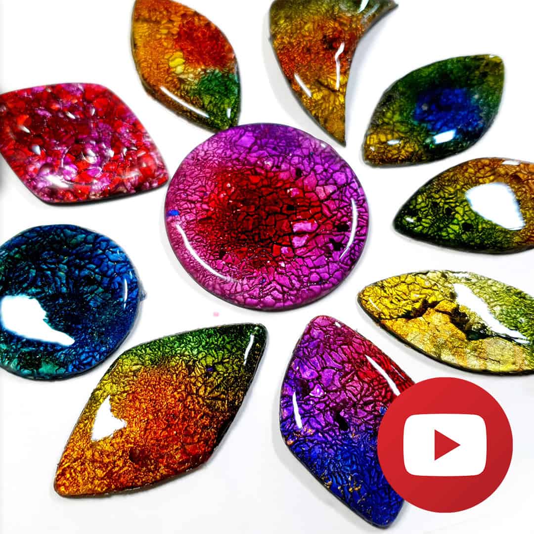 In this video tutorial I want to show you Faux lampwork cabochons with a colorful crackle effect.
