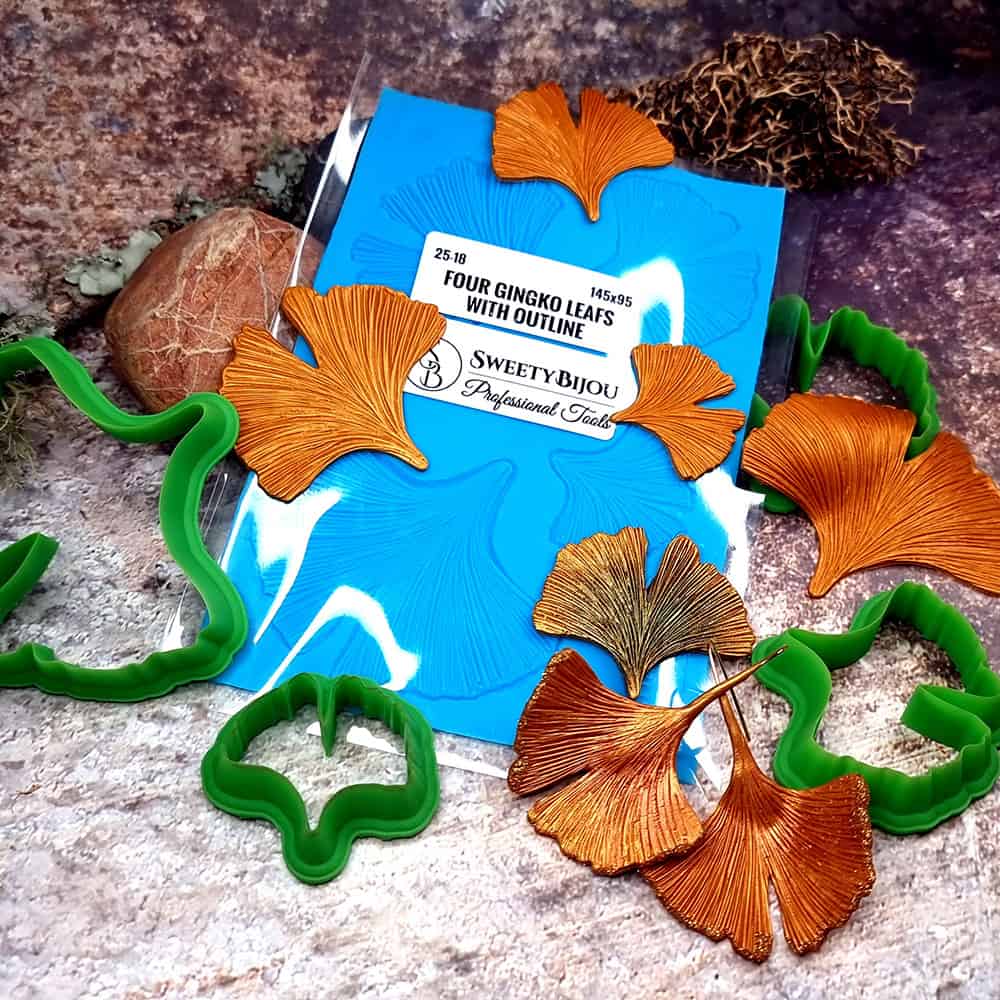 Professional Four Gingko Leafs Texture with Outline for your creations