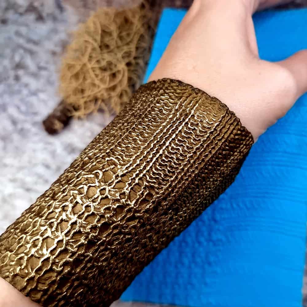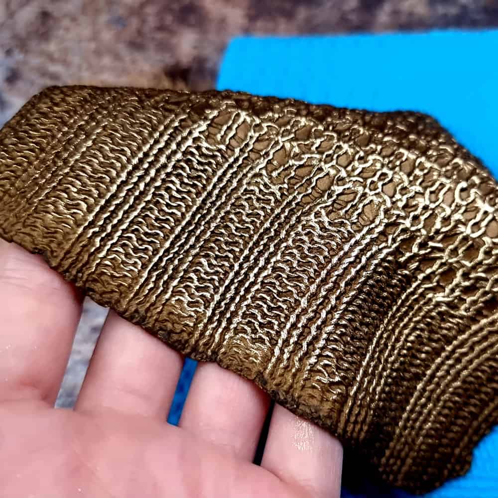 I made this texture from silicone which is flexible and does not require a release agent. It can be baked at a temperature of 150’C and can be used with all brands of polymer clay (preferably recommended a SOFT clay).