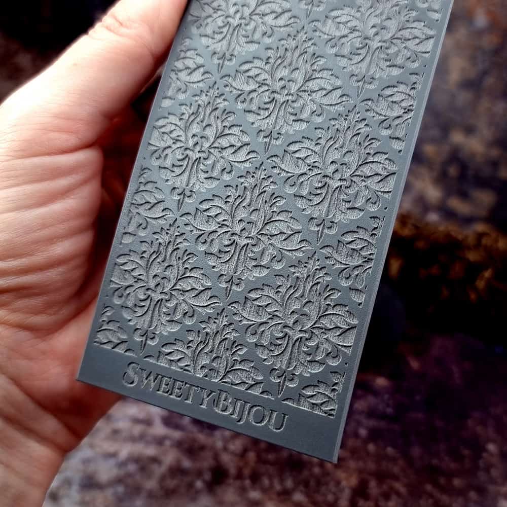 Constructed with exceptional quality rubber, the “Baroque Damask” texture sheet is crafted to achieve a deep, defined impression on polymer or metal clay, capturing every intricate swirl and leaf in high fidelity. The resulting jewelry pieces carry an air of aristocratic elegance, with a rich design that invites both visual and tactile engagement.