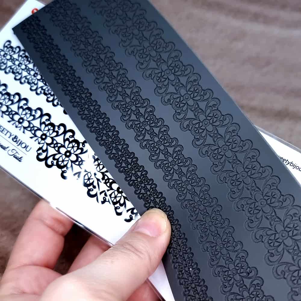 This high-quality rubber sheet is designed to provide a deep and detailed impression on polymer or metal clay, ensuring that each elaborate element of the pattern is captured with precision. The result is jewelry that is rich in texture, with a sophisticated design that echoes the intricate handwork of a bygone era.