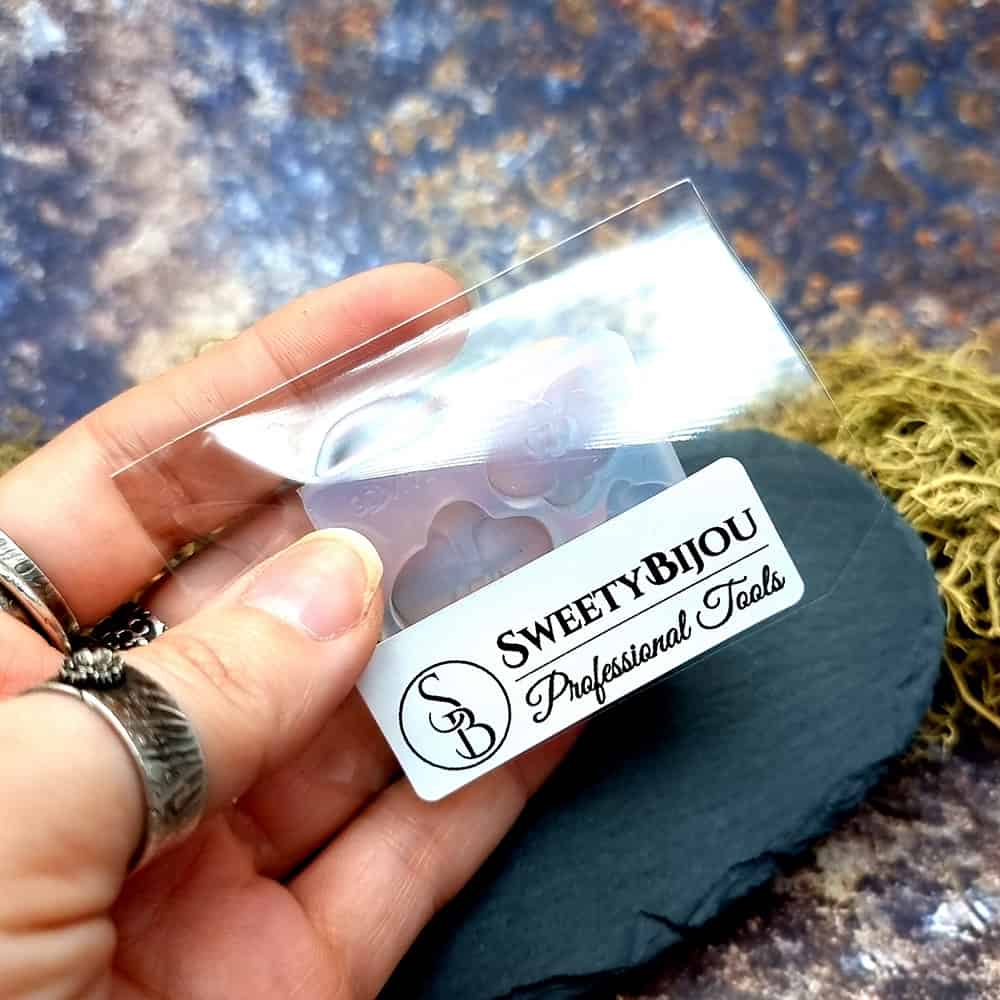 The molds can be used with polymer clay, liquid polymer clay, as well as with all kinds of metal clay. You also can use air-dry clay or porcelain clay to create tiny parts for miniature projects.
