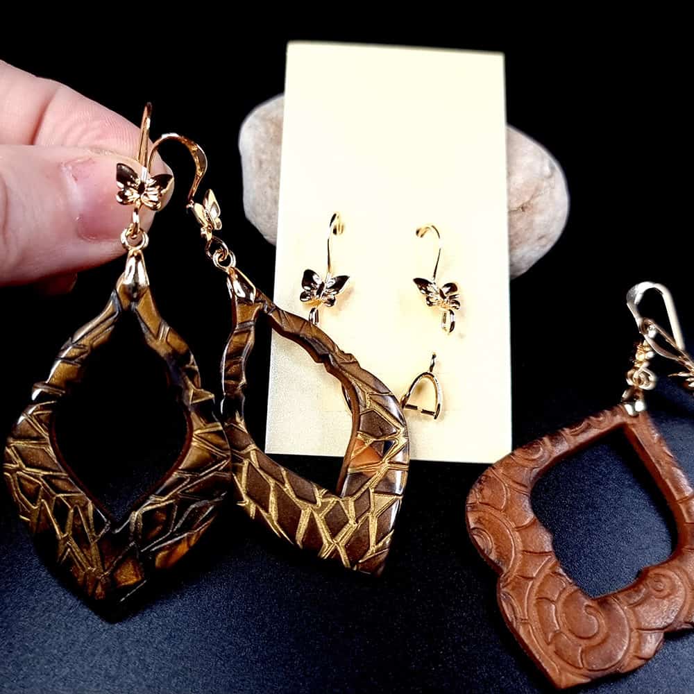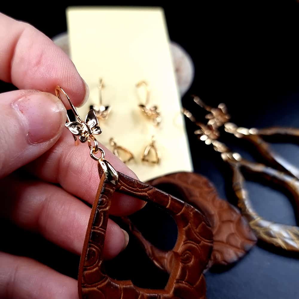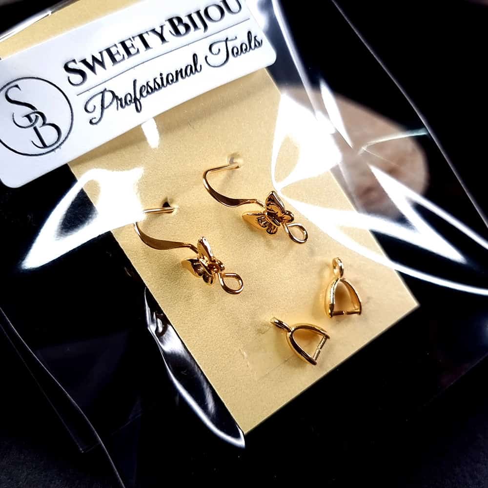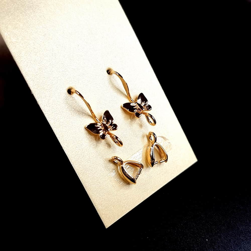 Pair of butterfly golden earrings hooks with bail