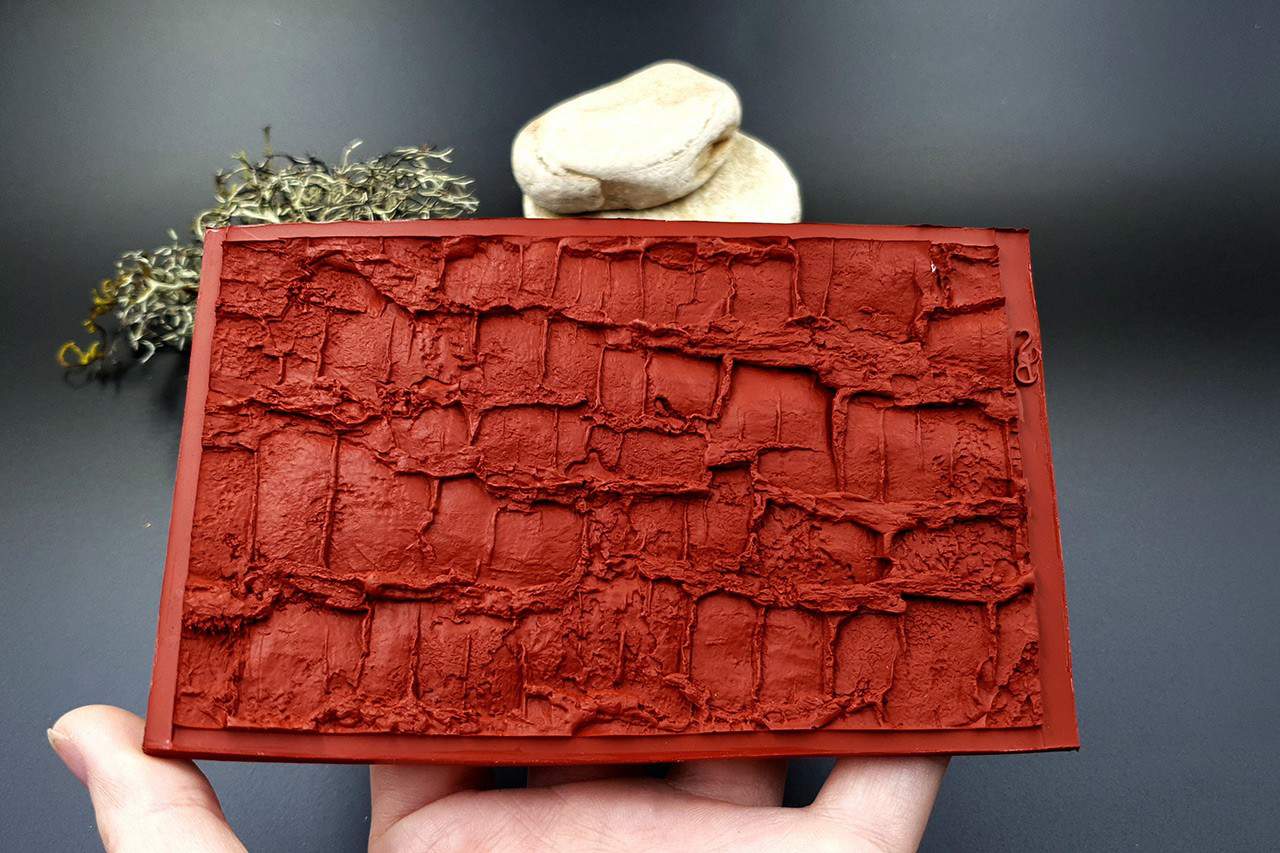 I made this texture from silicone which is flexible and does not require a release agent. It can be baked at a temperature of 150’C and can be used with all brands of polymer clay (preferably recommended a SOFT clay).