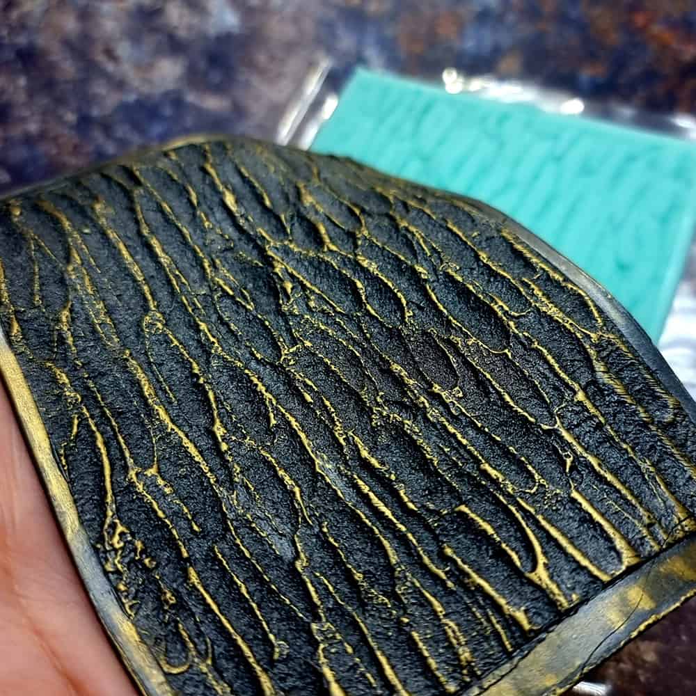 I made this texture from silicone which is flexible and does not require a release agent. It can be baked at a temperature of 150’C and can be used with all brands of polymer clay (preferably recommended a SOFT clay).
