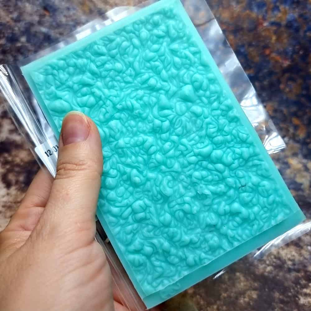 I made this texture from silicone which is flexible and does not require a release agent. It can be baked at a temperature of 150’C and can be used with all brands of polymer clay (preferably recommended a SOFT clay).
