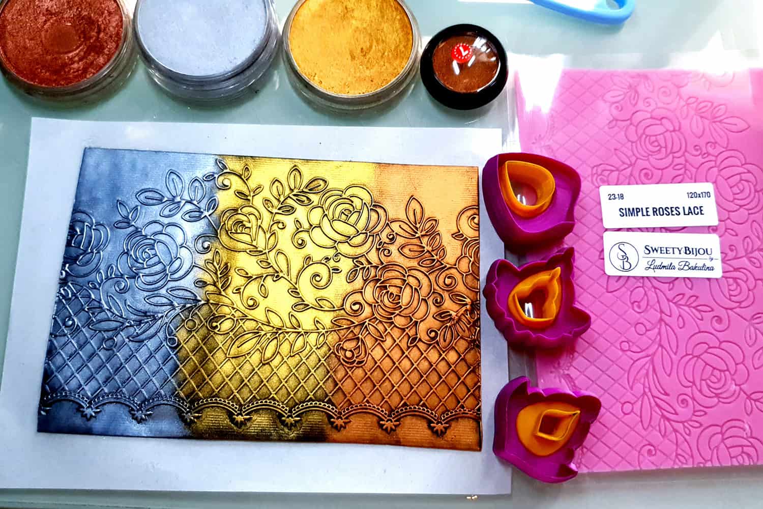 This high-quality lace silicone texture is very easy to use and you can easily create any unique jewelry, like: