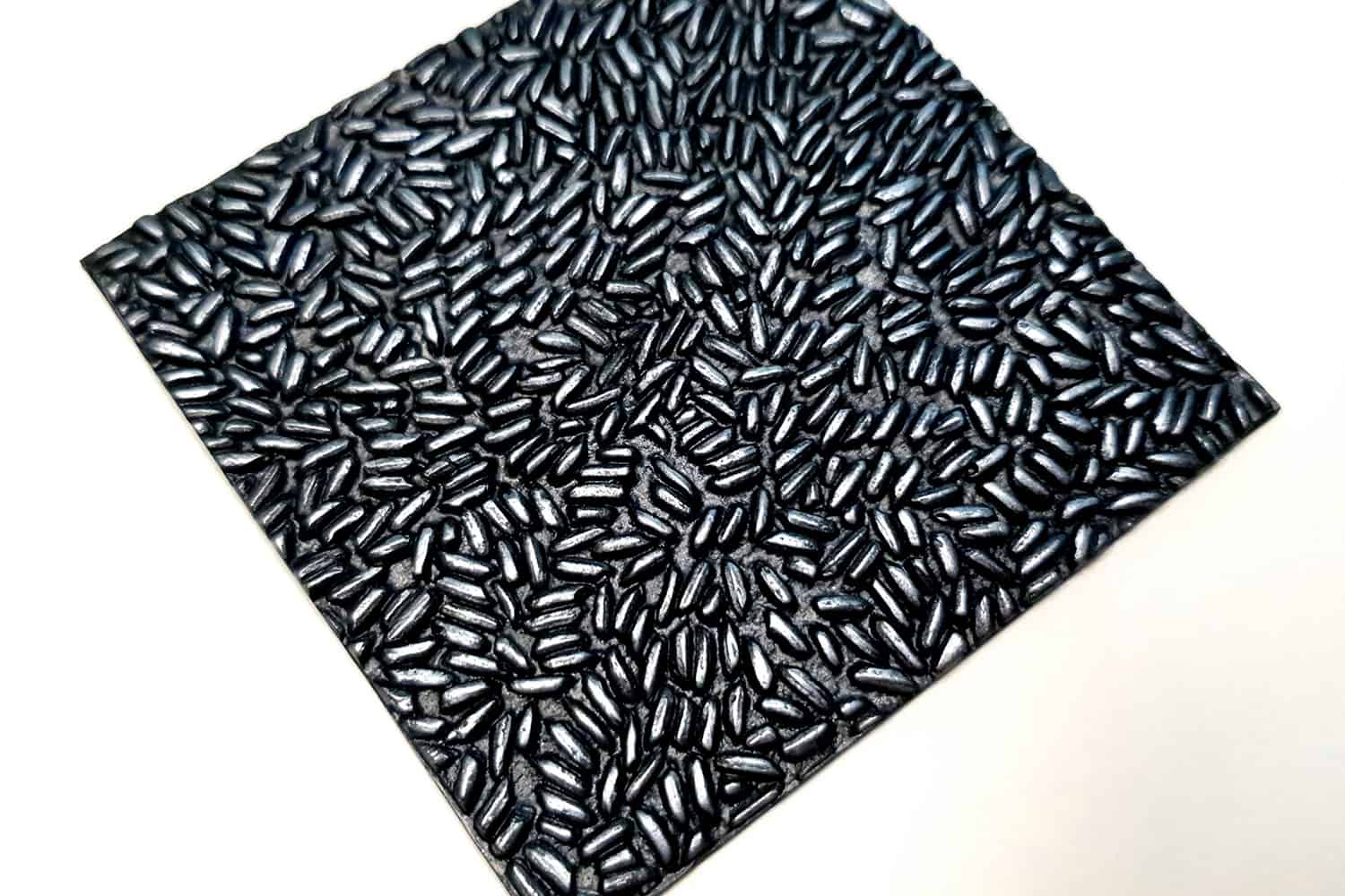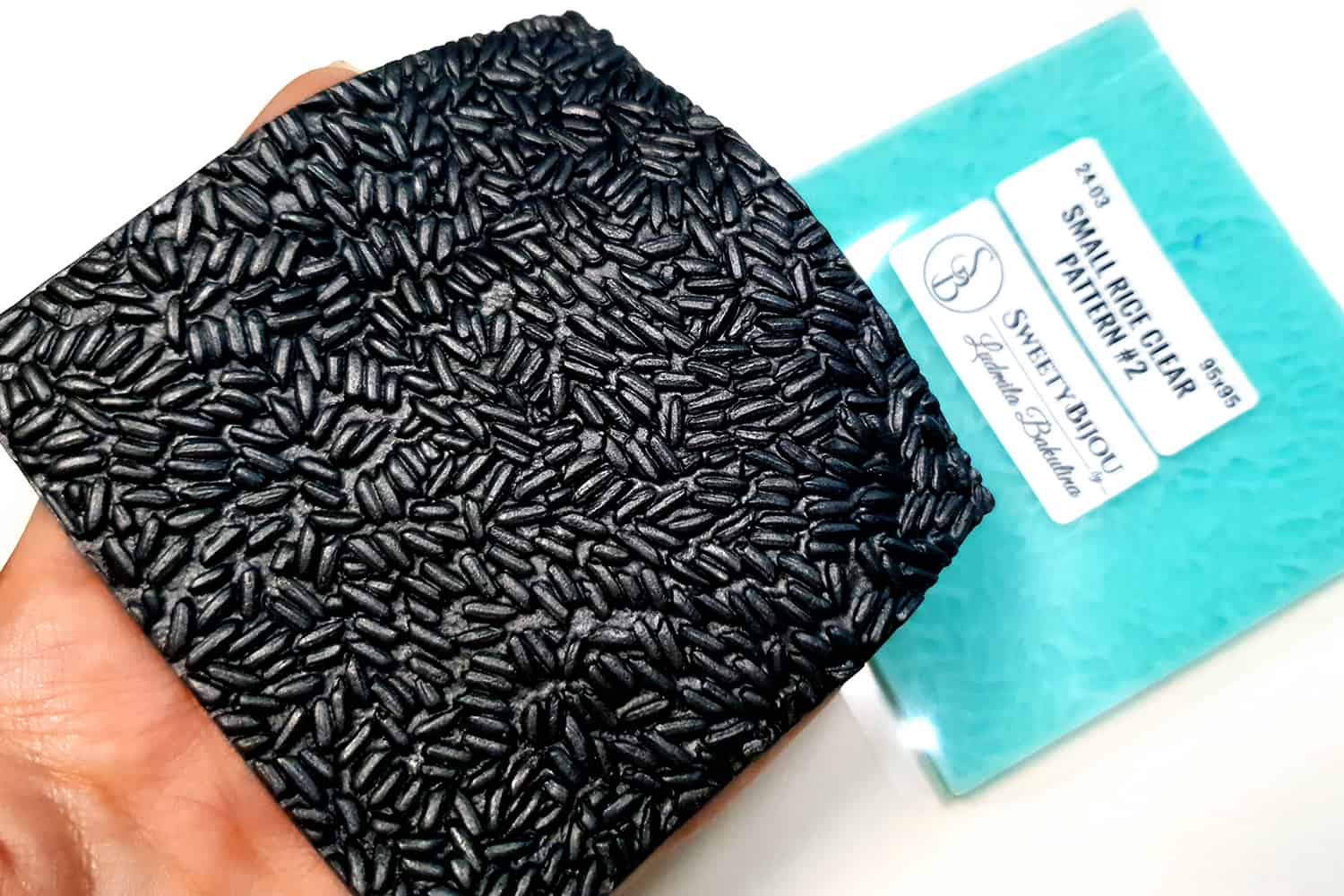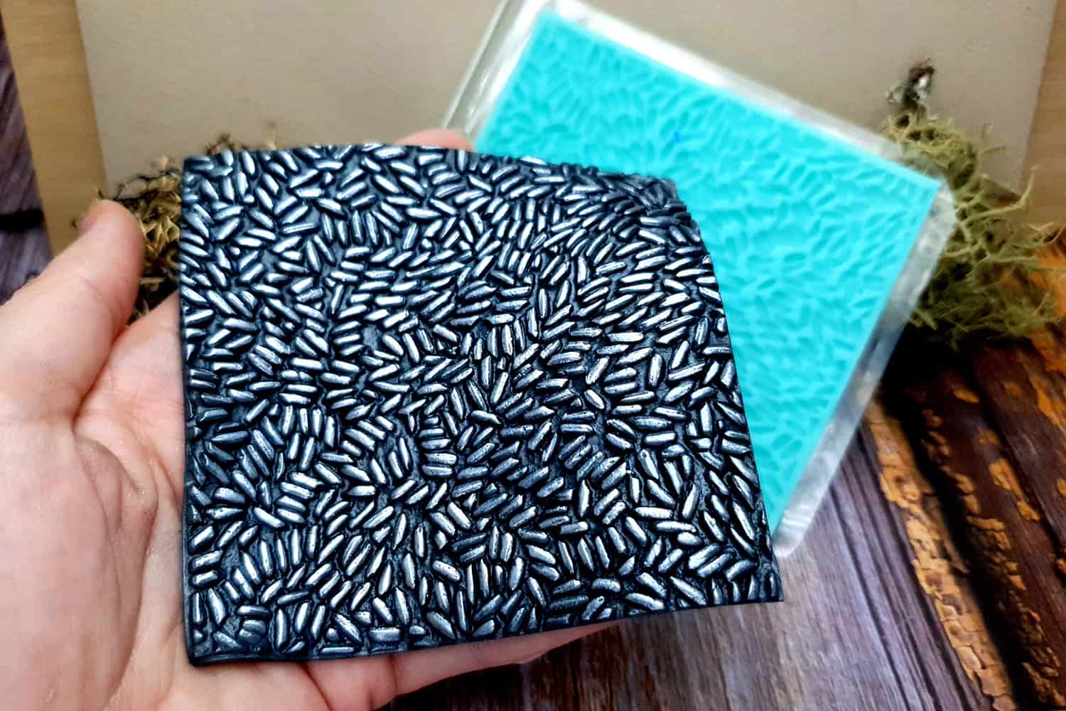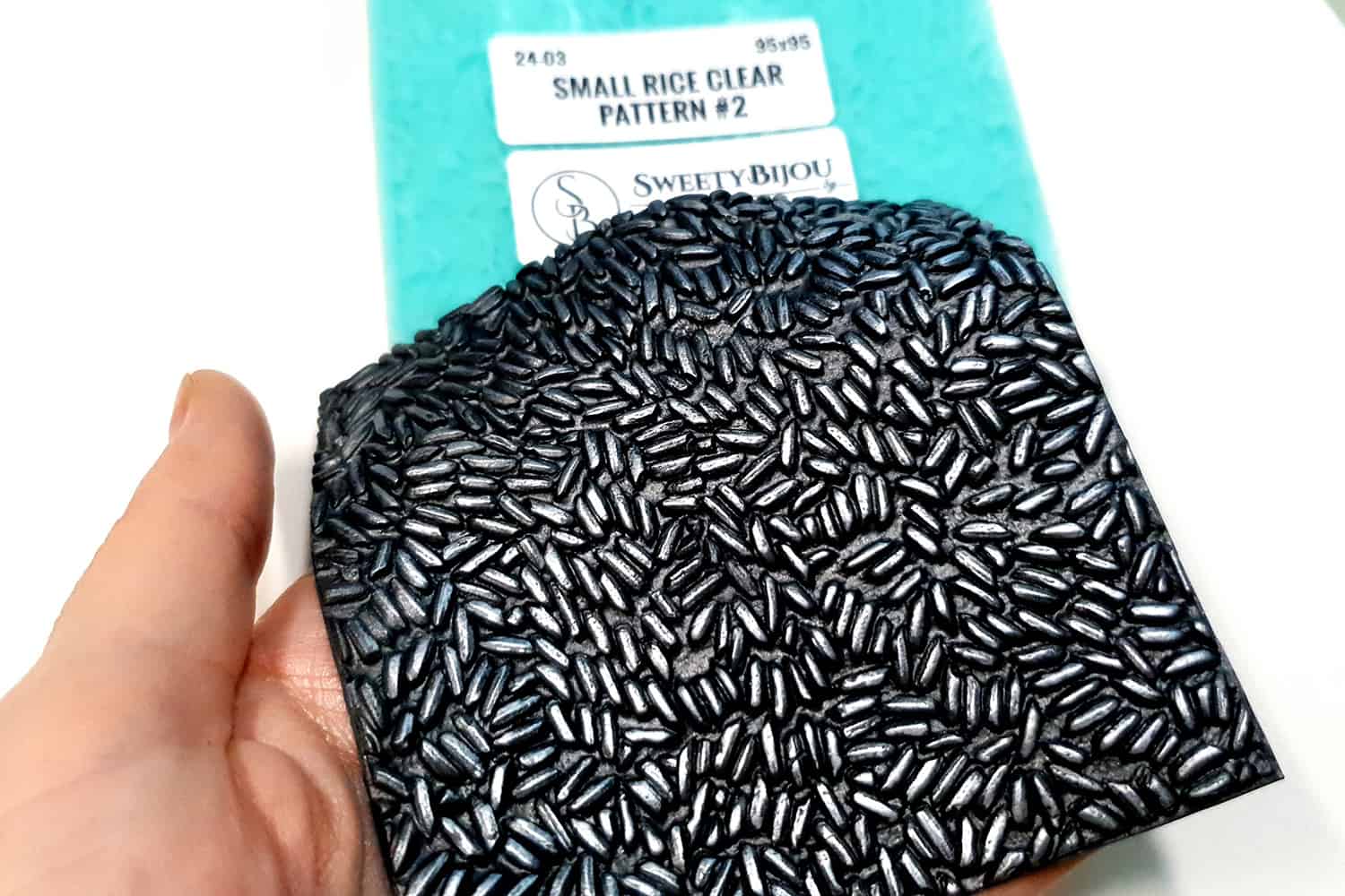 I made this texture from silicone which is flexible and does not require a release agent. It can be baked at a temperature of 150’C and can be used with all brands of polymer clay (preferably recommended a SOFT clay).