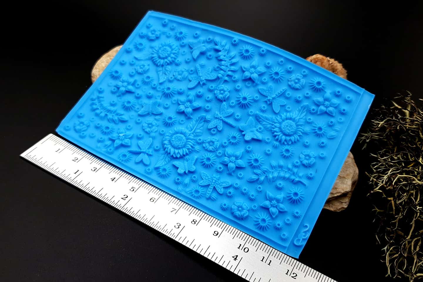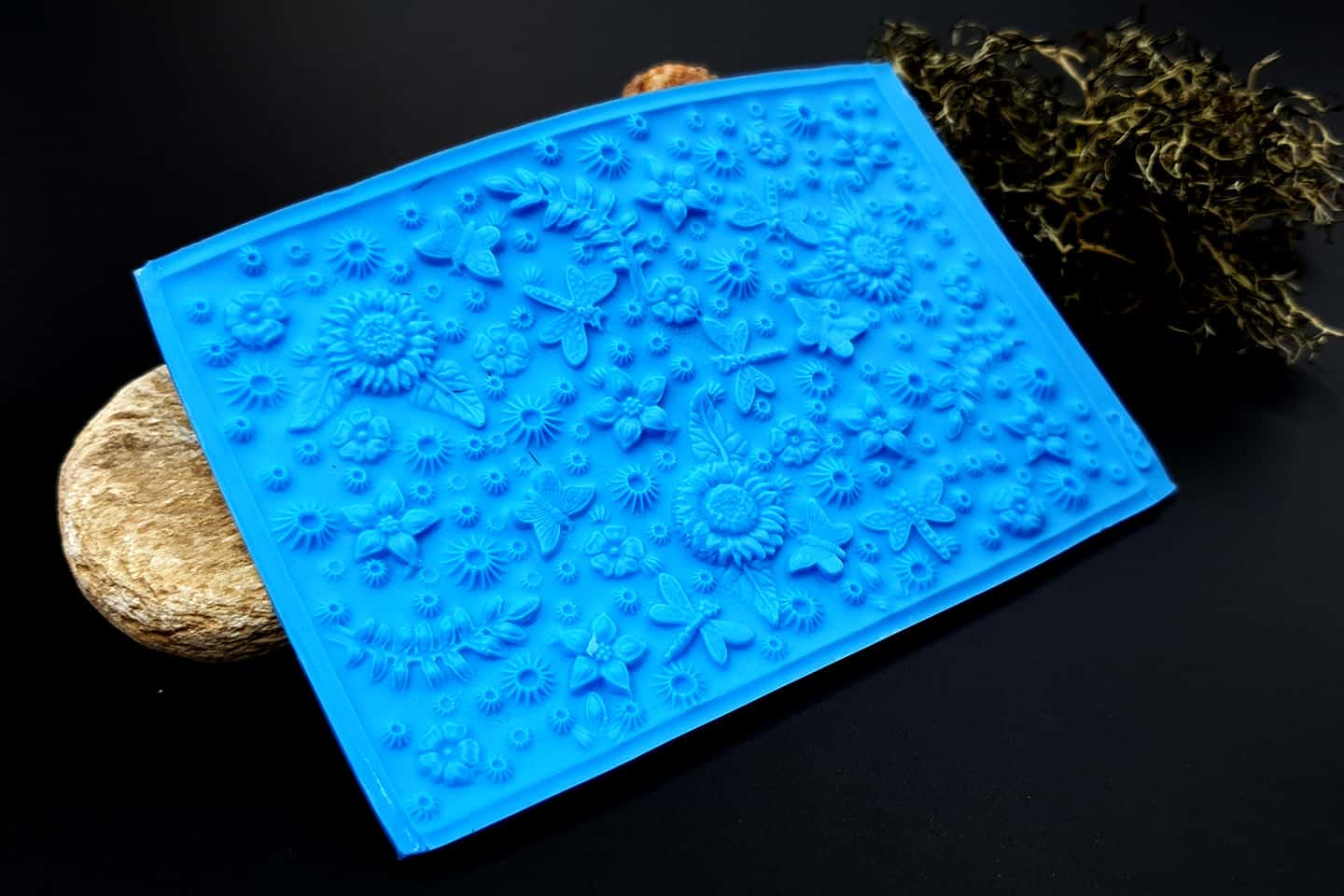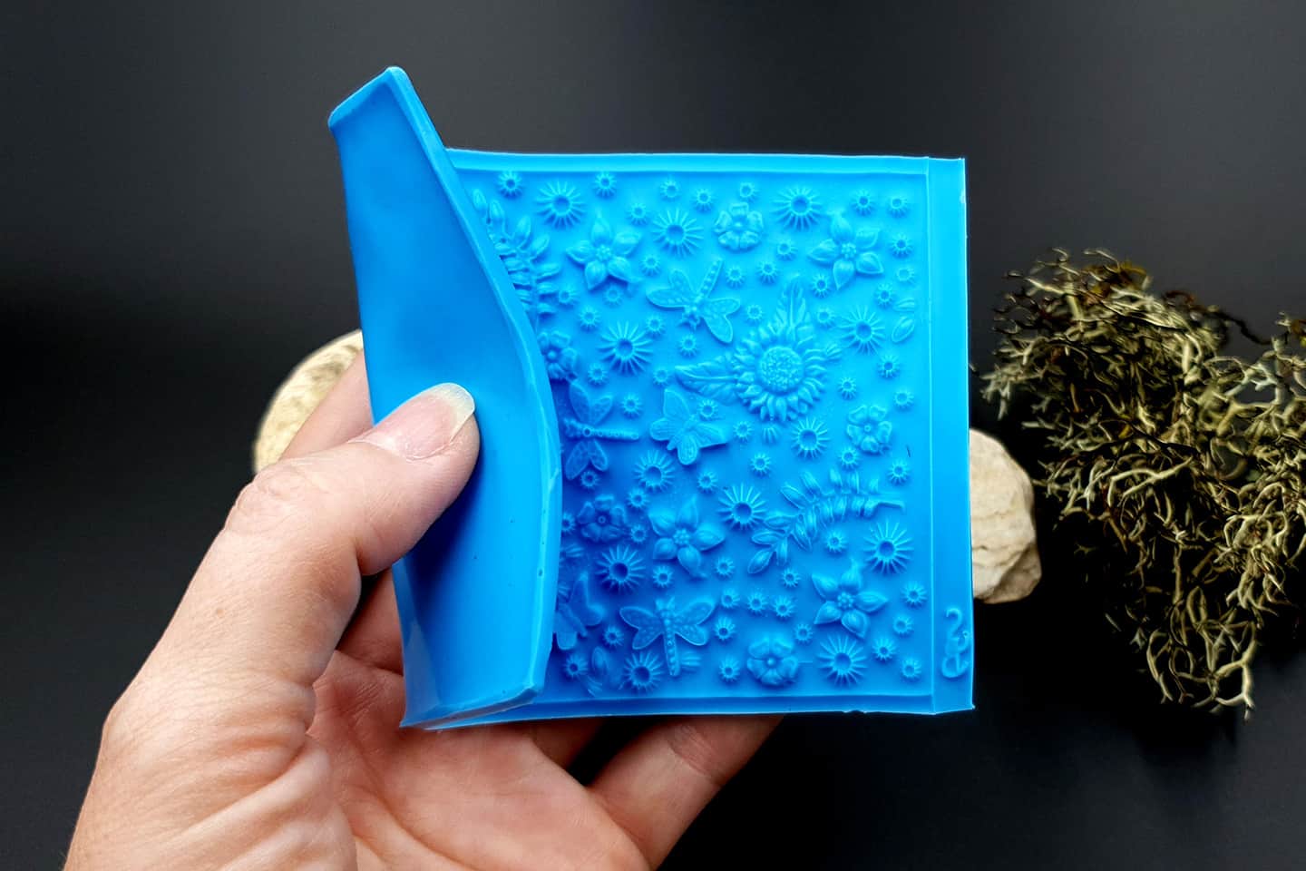 I made this texture from silicone which is flexible and does not require a release agent. It can be baked at a temperature of 150’C and can be used with all brands of polymer clay (preferably recommended a SOFT clay).