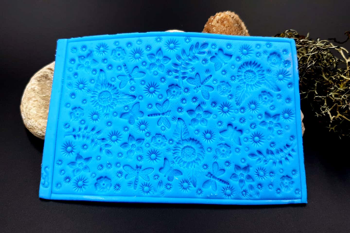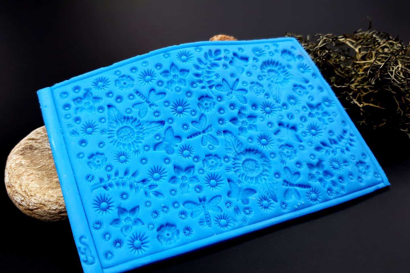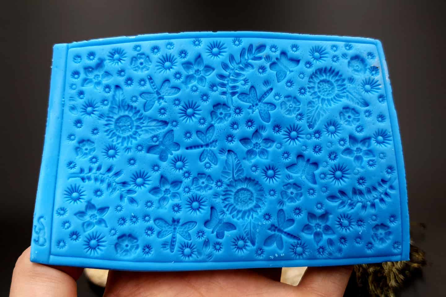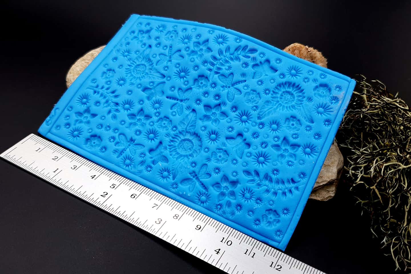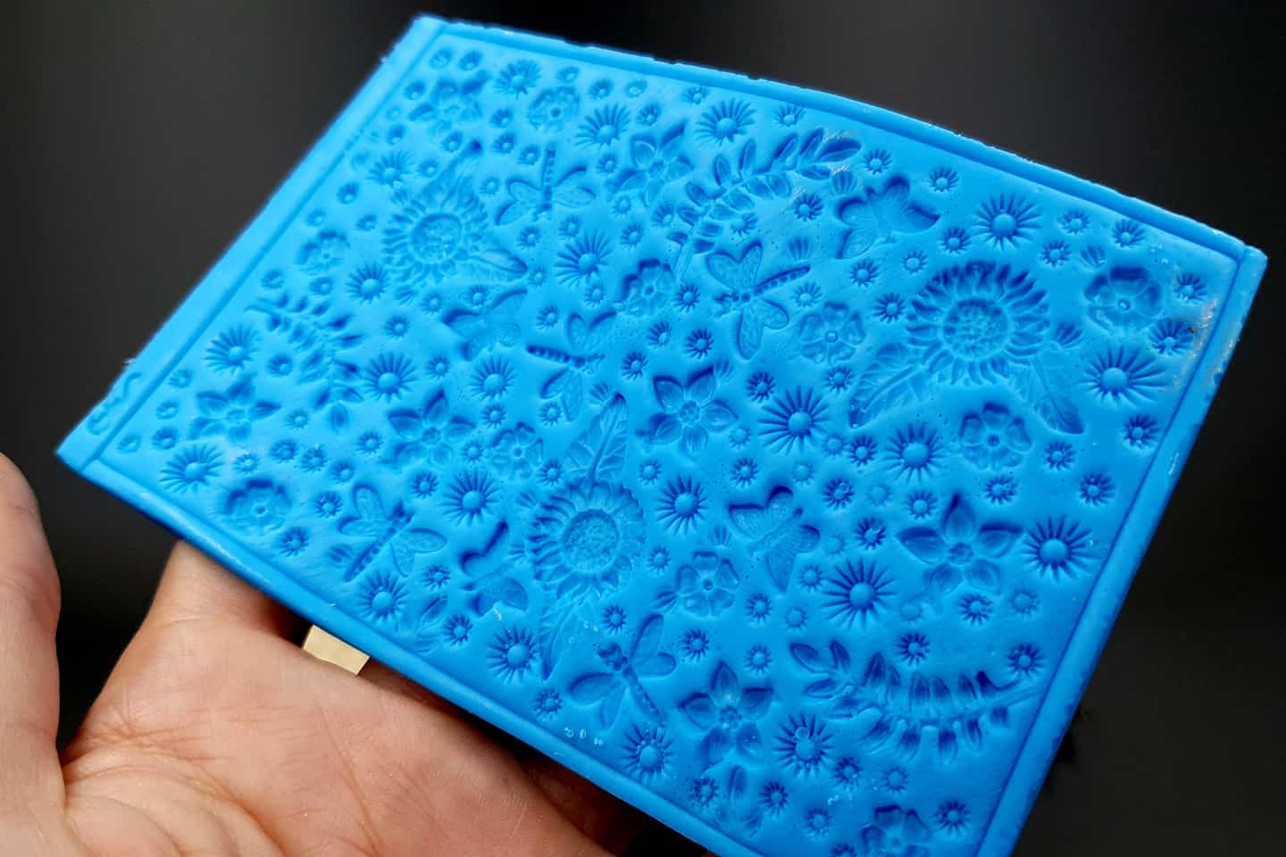 I made this texture from silicone which is flexible and does not require a release agent. It can be baked at a temperature of 150’C and can be used with all brands of polymer clay (preferably recommended a SOFT clay).