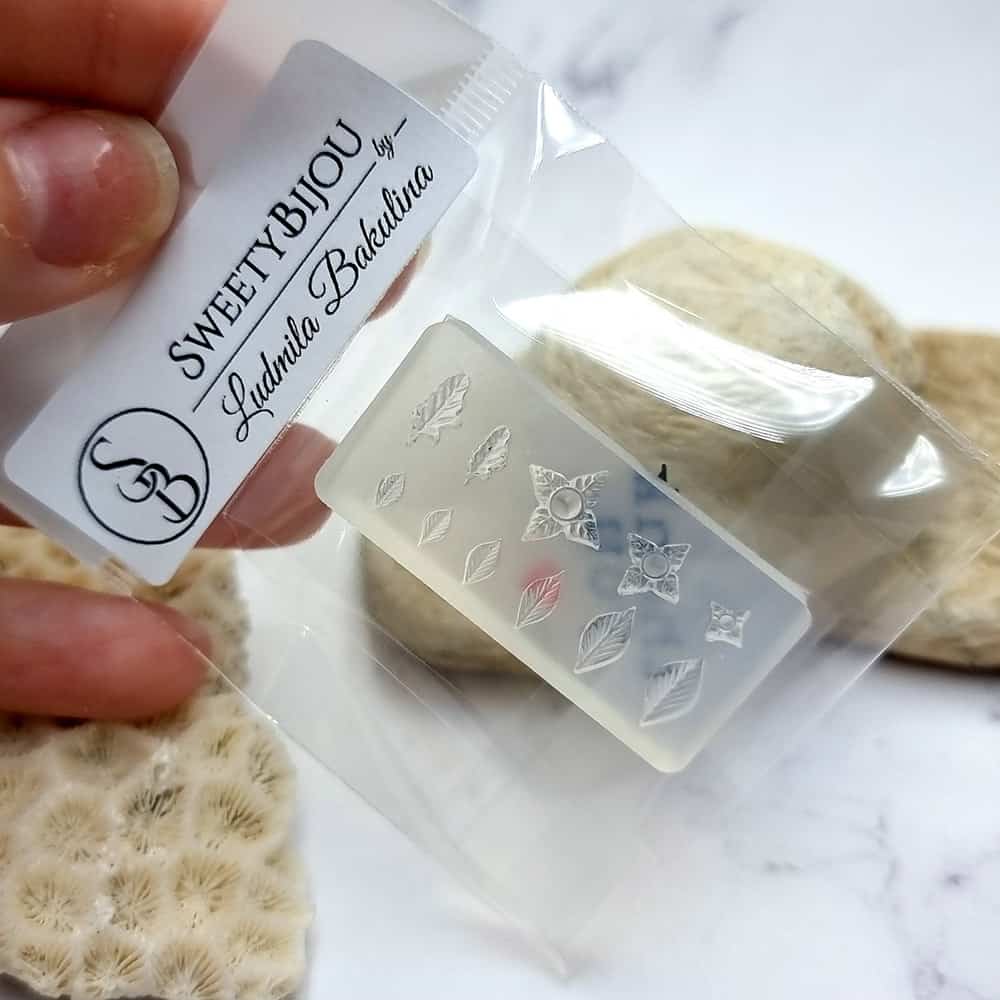 The molds can be used with polymer clay, liquid polymer clay, as well as with all kinds of metal clay. You also can use air-dry clay or porcelain clay to create tiny parts for miniature projects.