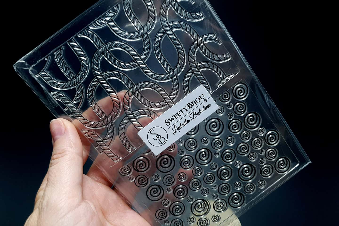 Clear silicone stamp “Swirls and Ropes” is a great tool for your polymer clay projects like jewelry making, home decor projects, or miniature dollhouse projects.