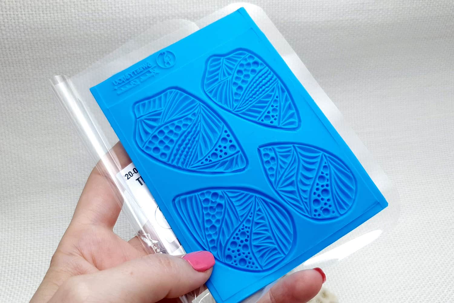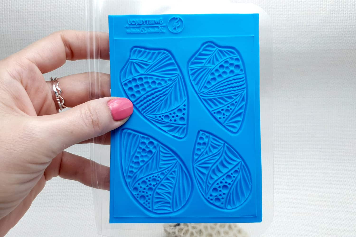 I made this texture from silicone which is flexible and does not require a release agent. It can be baked at a temperature of 150’C and can be used with all brands of polymer clay (preferably recommended a SOFT clay).