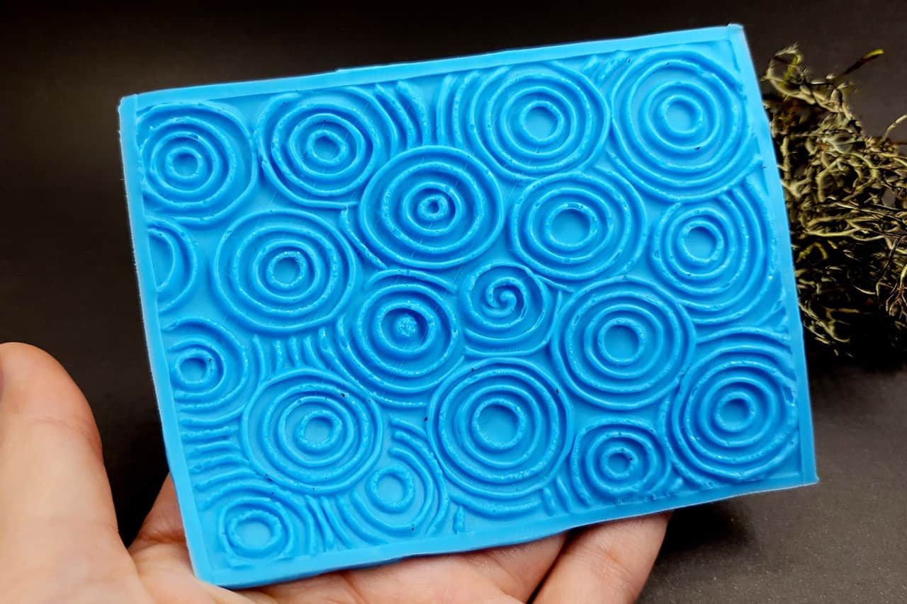 I made this texture from silicone which is flexible and does not require a release agent. It can be baked at a temperature of 150’C and can be used with all brands of polymer clay (preferably recommended a SOFT clay).