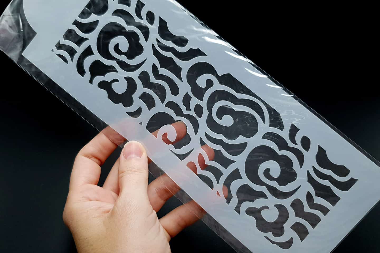 This template is great to use in your polymer clay jewelry projects, which can be used with any kind of paint: acrylic, watercolor, crackle paints, and other mediums on polymer clay surfaces! As well this stencil is very easy to use with metallic foils and transfer foils!