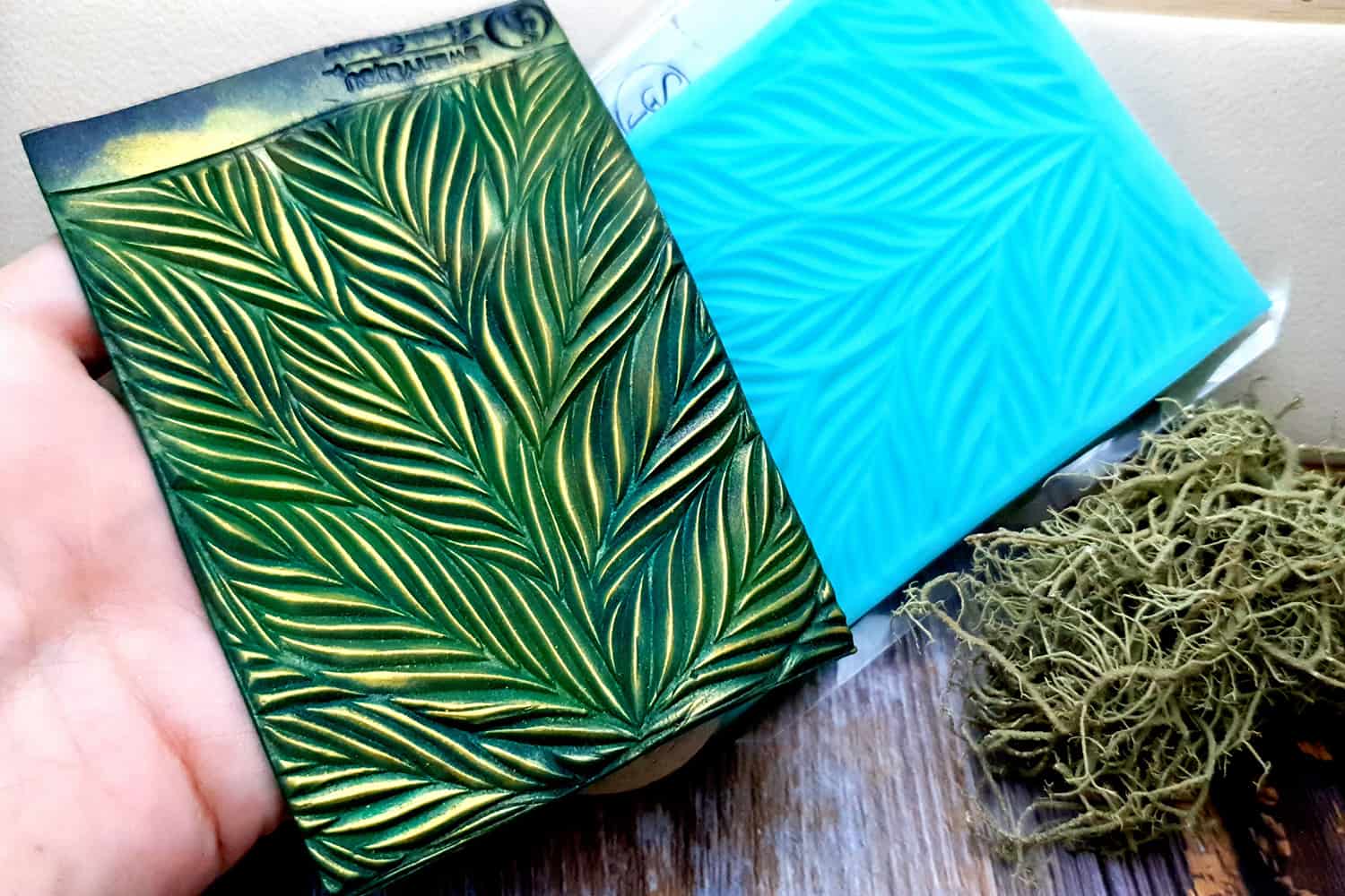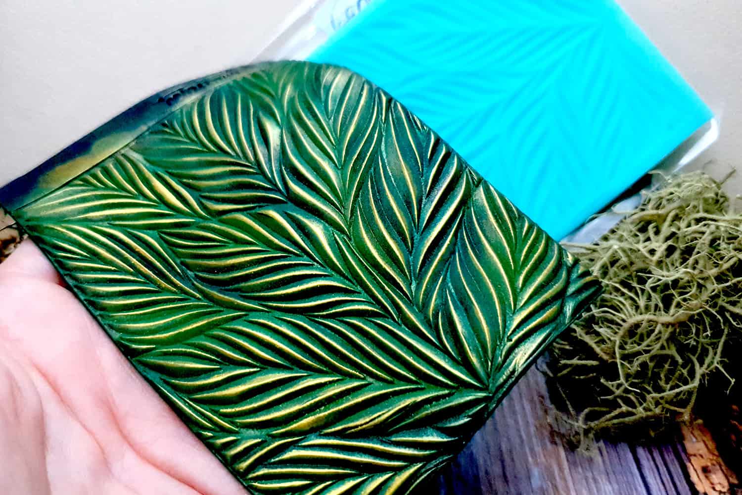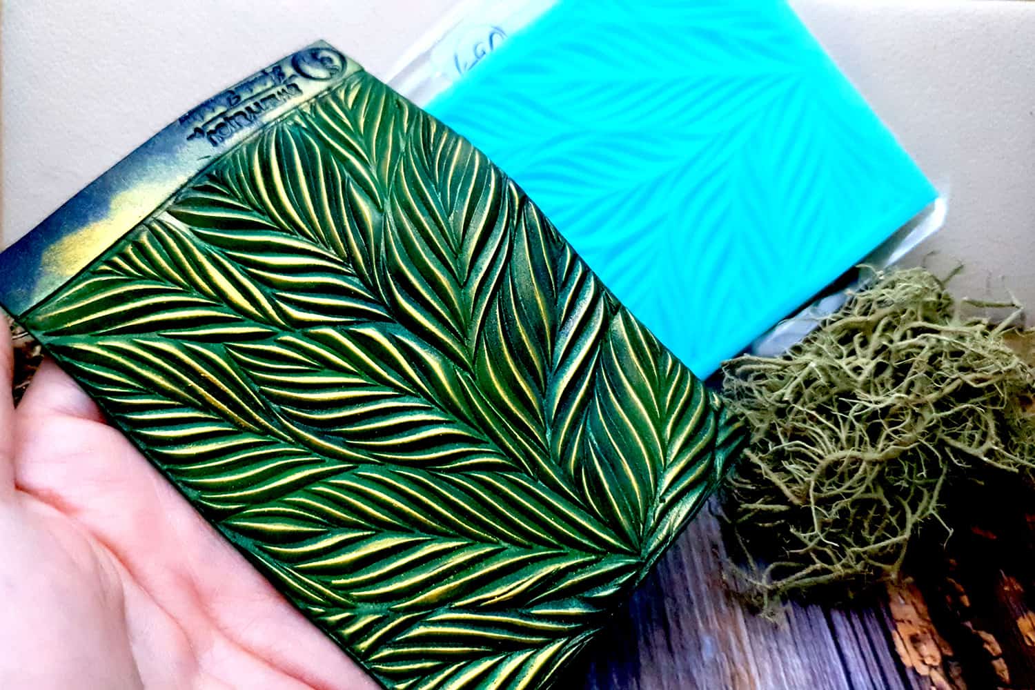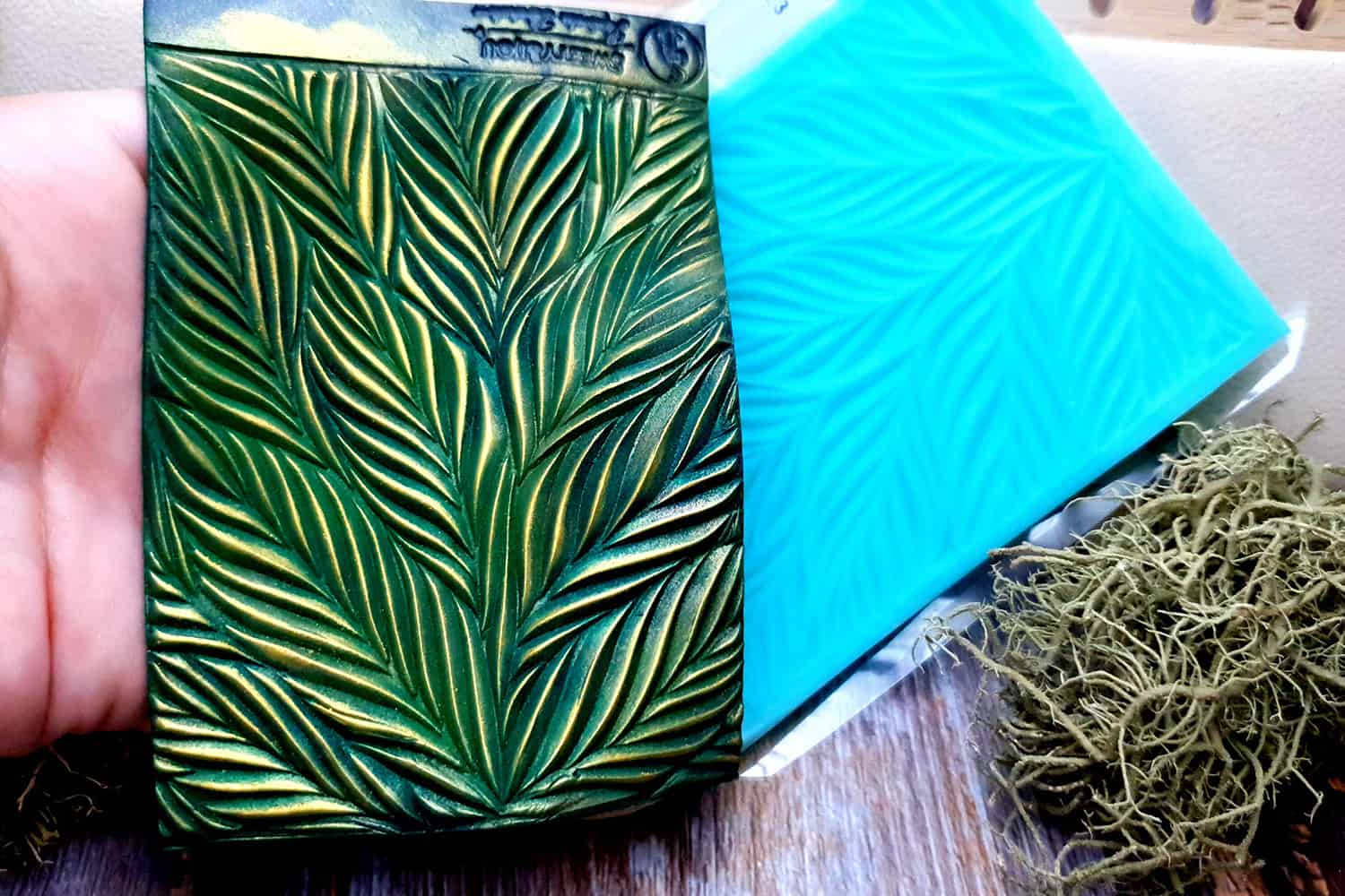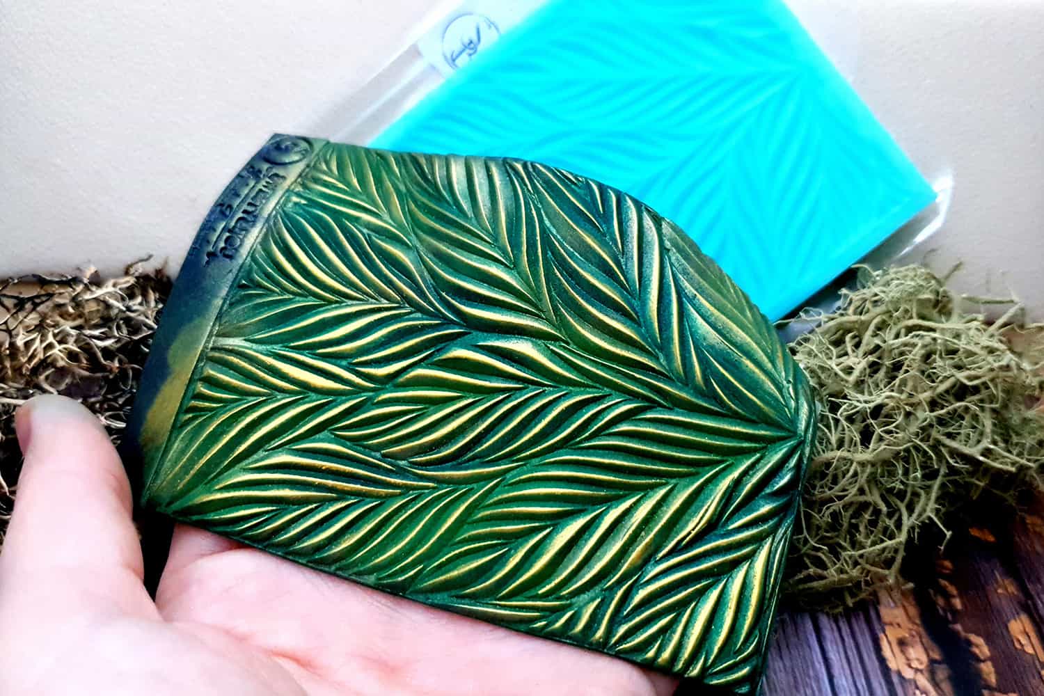 I made this texture from silicone which is flexible and does not require a release agent. It can be baked at a temperature of 150’C and can be used with all brands of polymer clay (preferably recommended a SOFT clay).