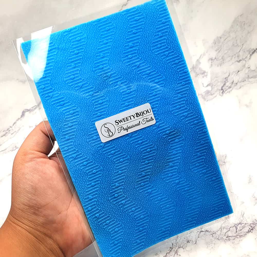 I made this texture from silicone which is flexible and does not require a release agent. It can be baked at a temperature of 150’C and can be used with all brands of polymer clay (preferably recommended a SOFT clay).