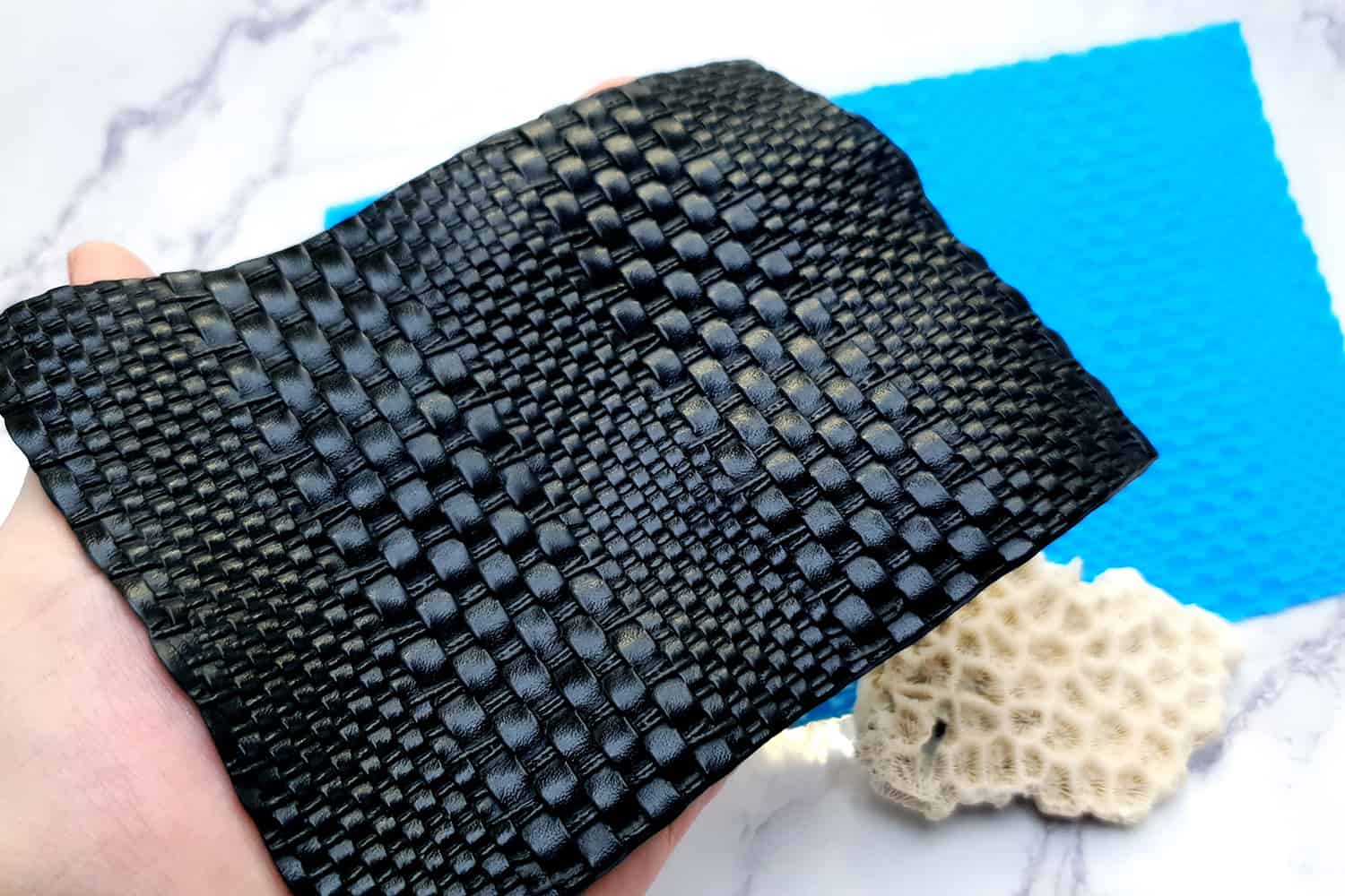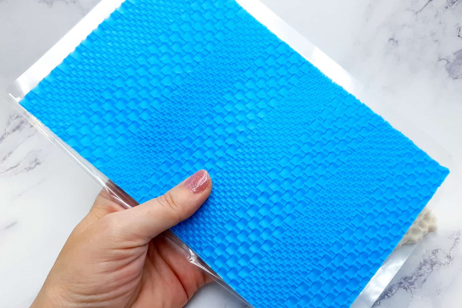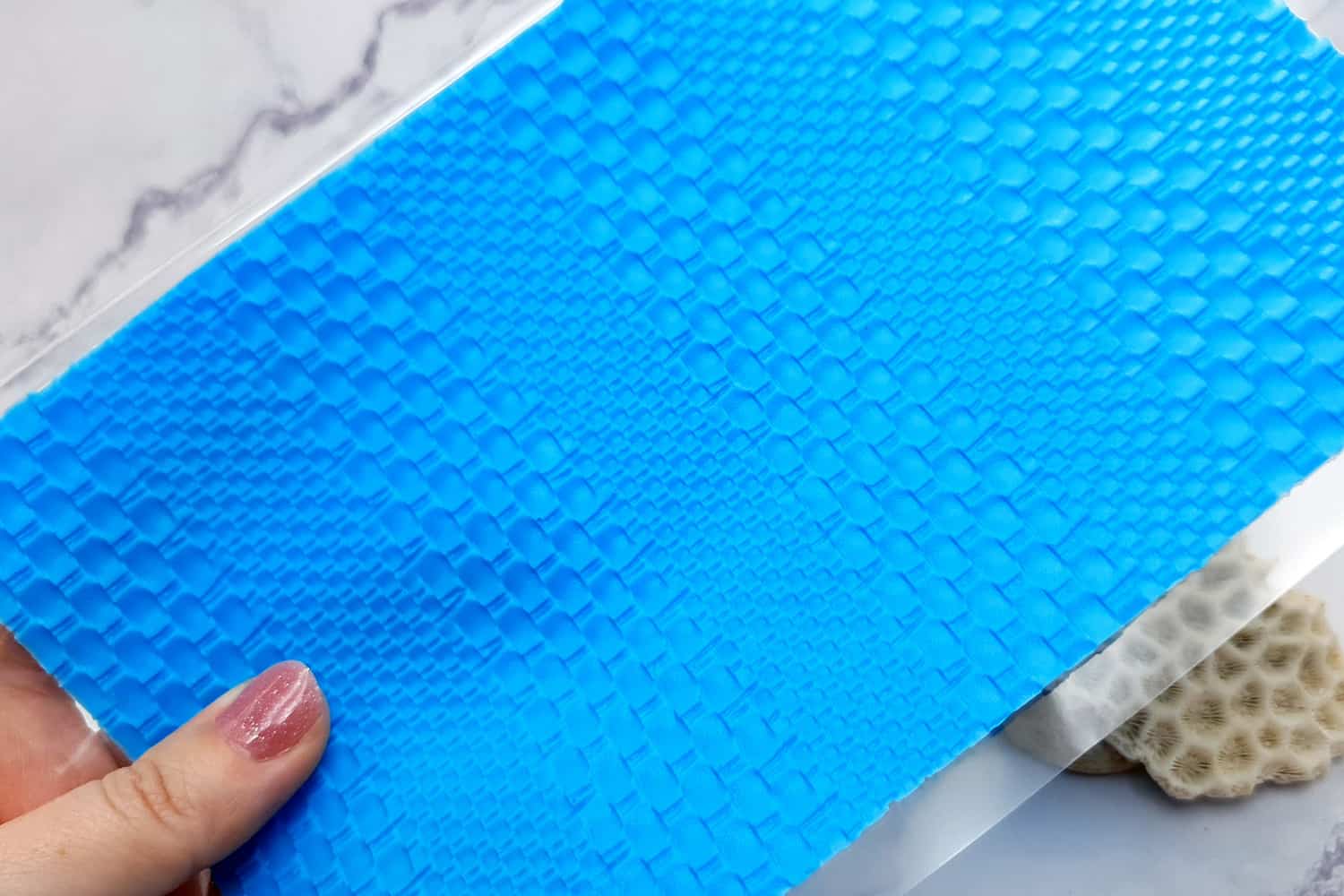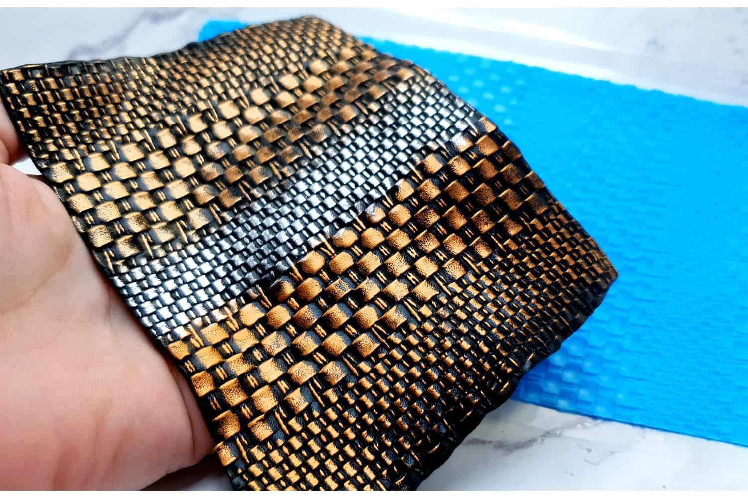 Teksturę wykonałam z silikonu, który jest elastyczny i nie wymaga stosowania środka antyadhezyjnego. Można ją wypalać w temperaturze 150'C i stosować ze wszystkimi rodzajami glinek polimerowych (najlepiej zaleca się glinki SOFT).