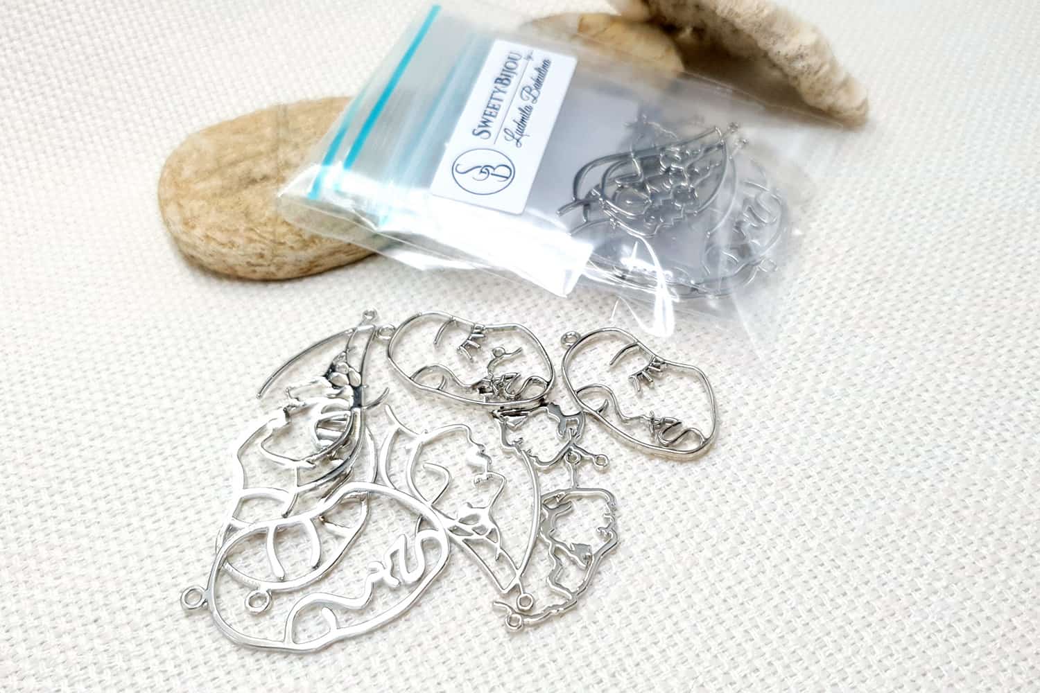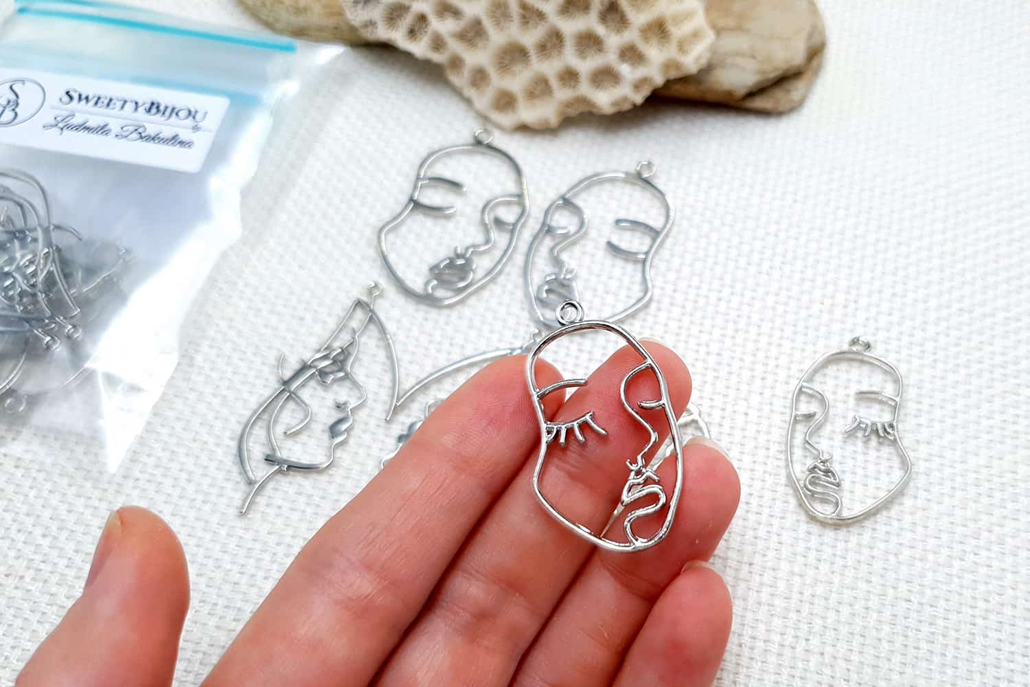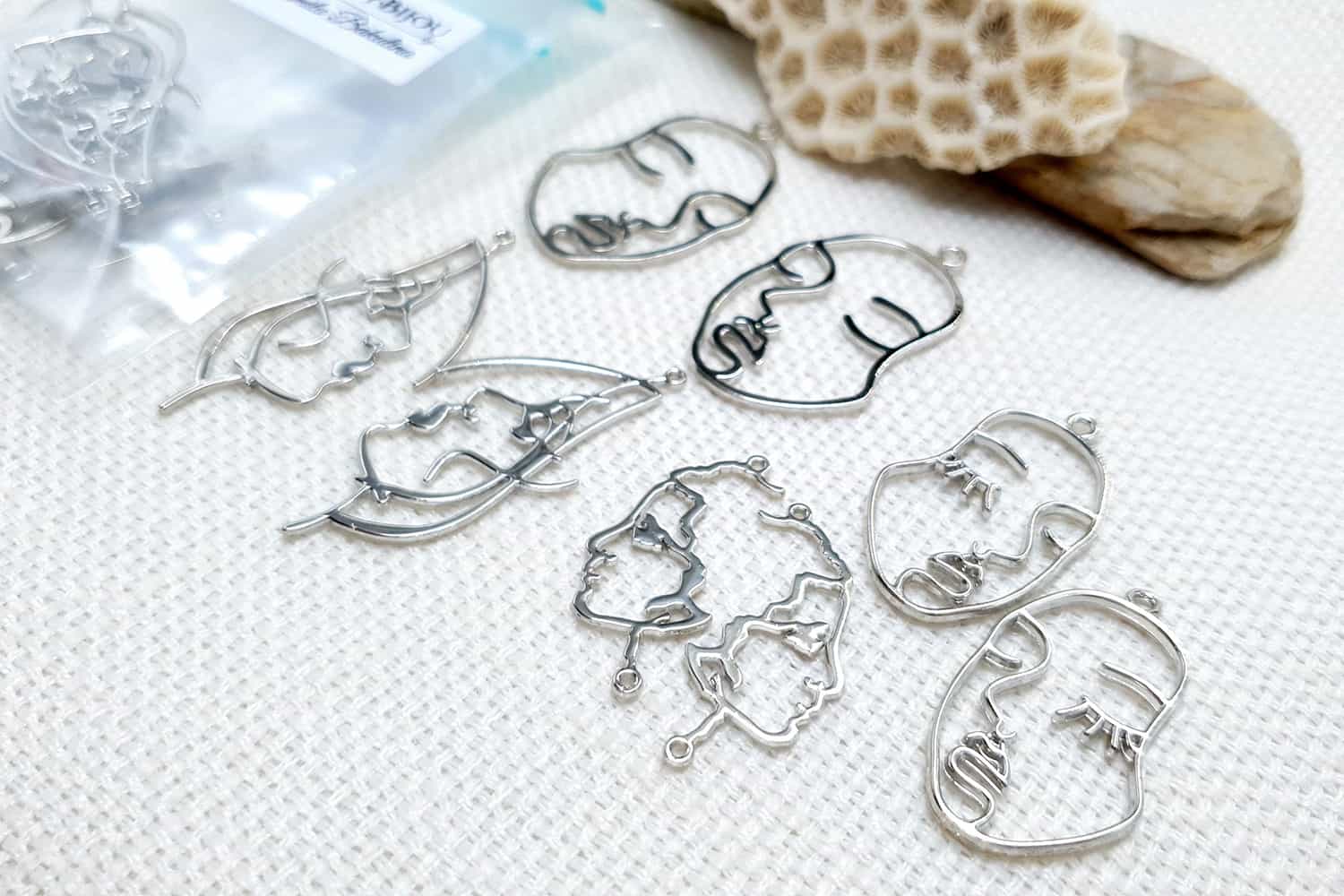 “Rostos – Conjunto de 8 peças de descobertas de joias de metal prateado” – descobertas incomuns de brincos de alta qualidade para suas criações de joias.
