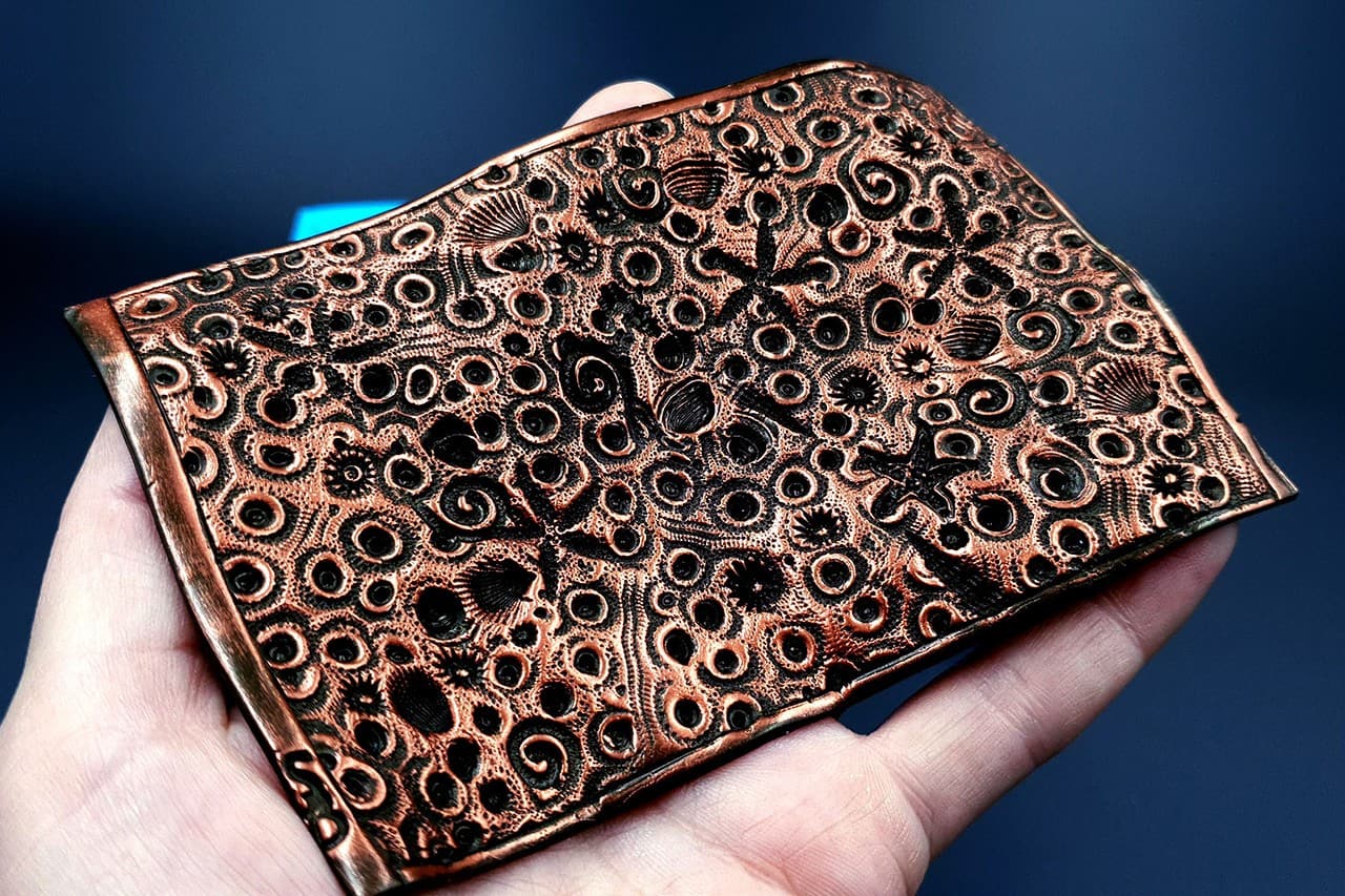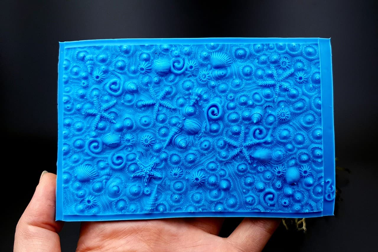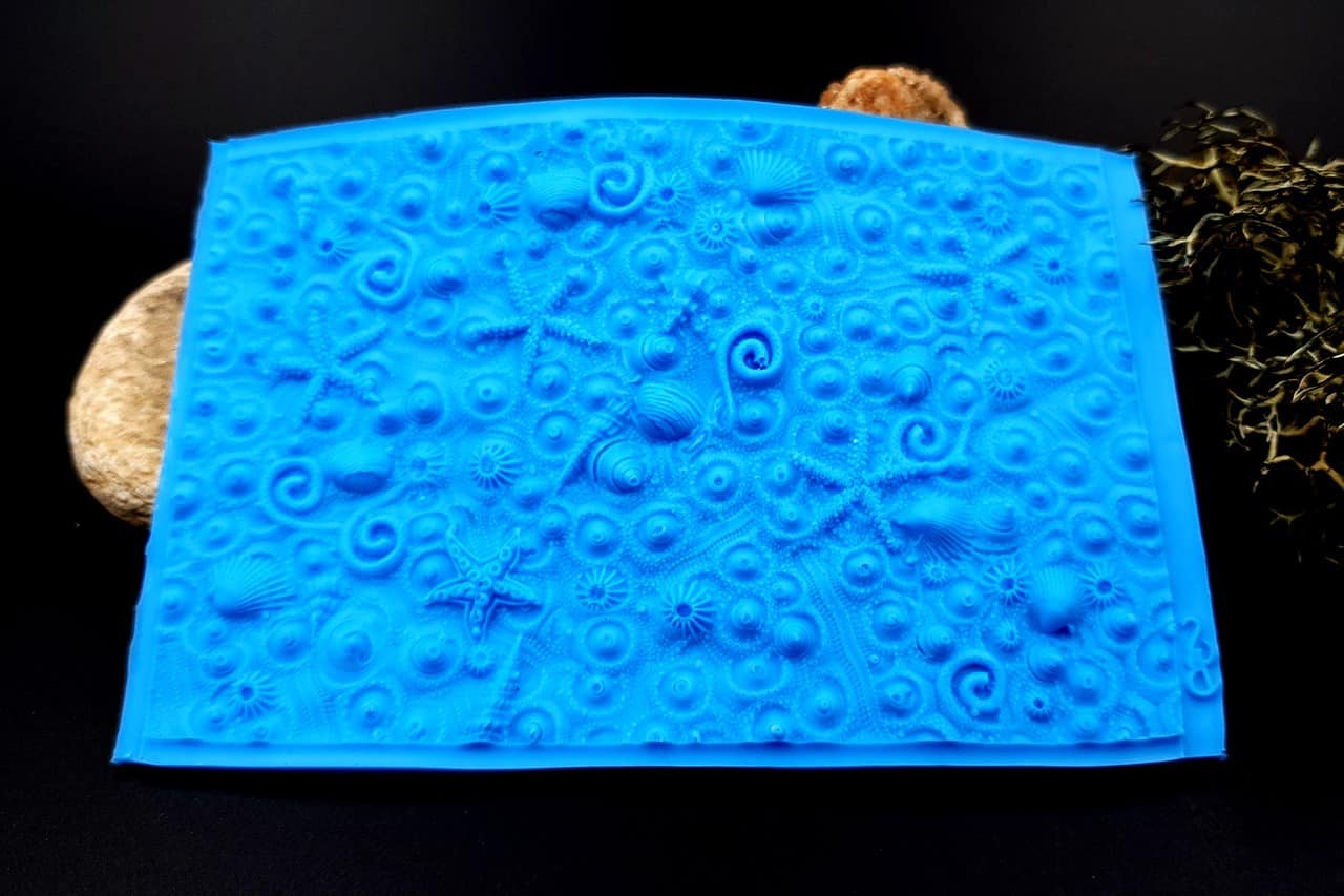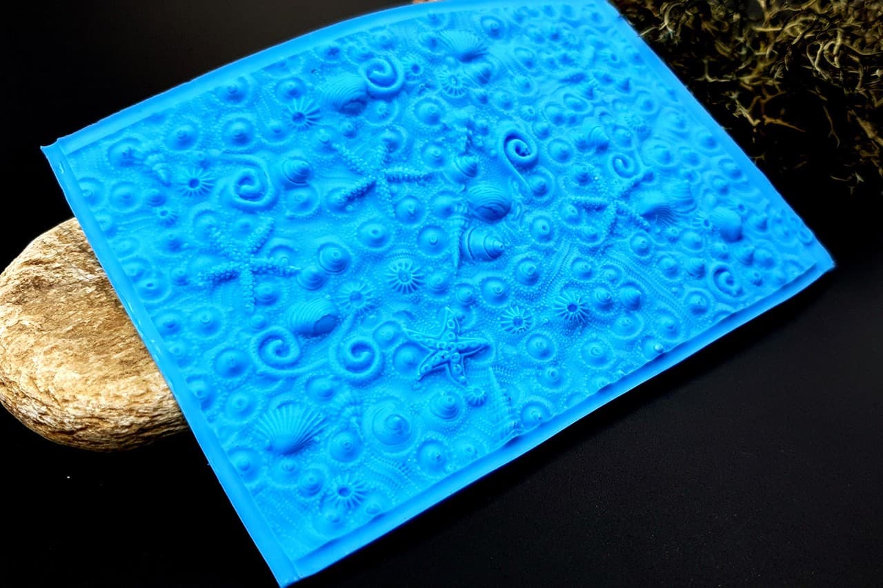 Fiz essa textura de silicone que é flexível e não precisa de desmoldante. Pode ser cozido a uma temperatura de 150'C e pode ser usado com todas as marcas de argila polimérica (recomenda-se de preferência uma argila SOFT).