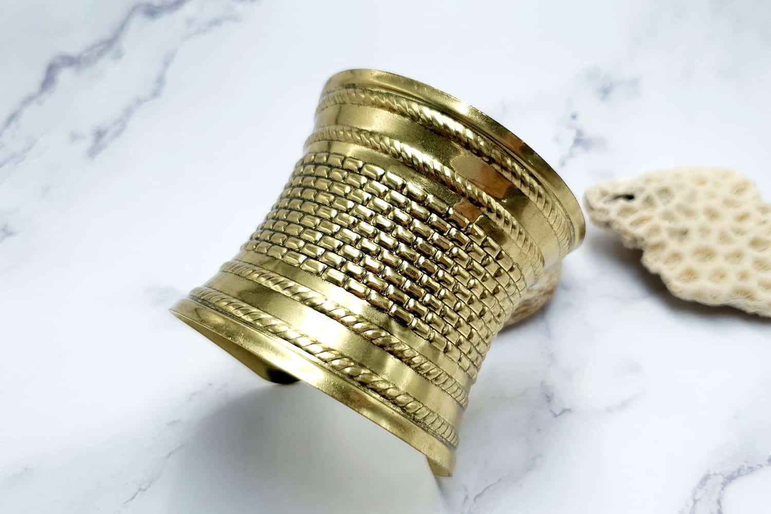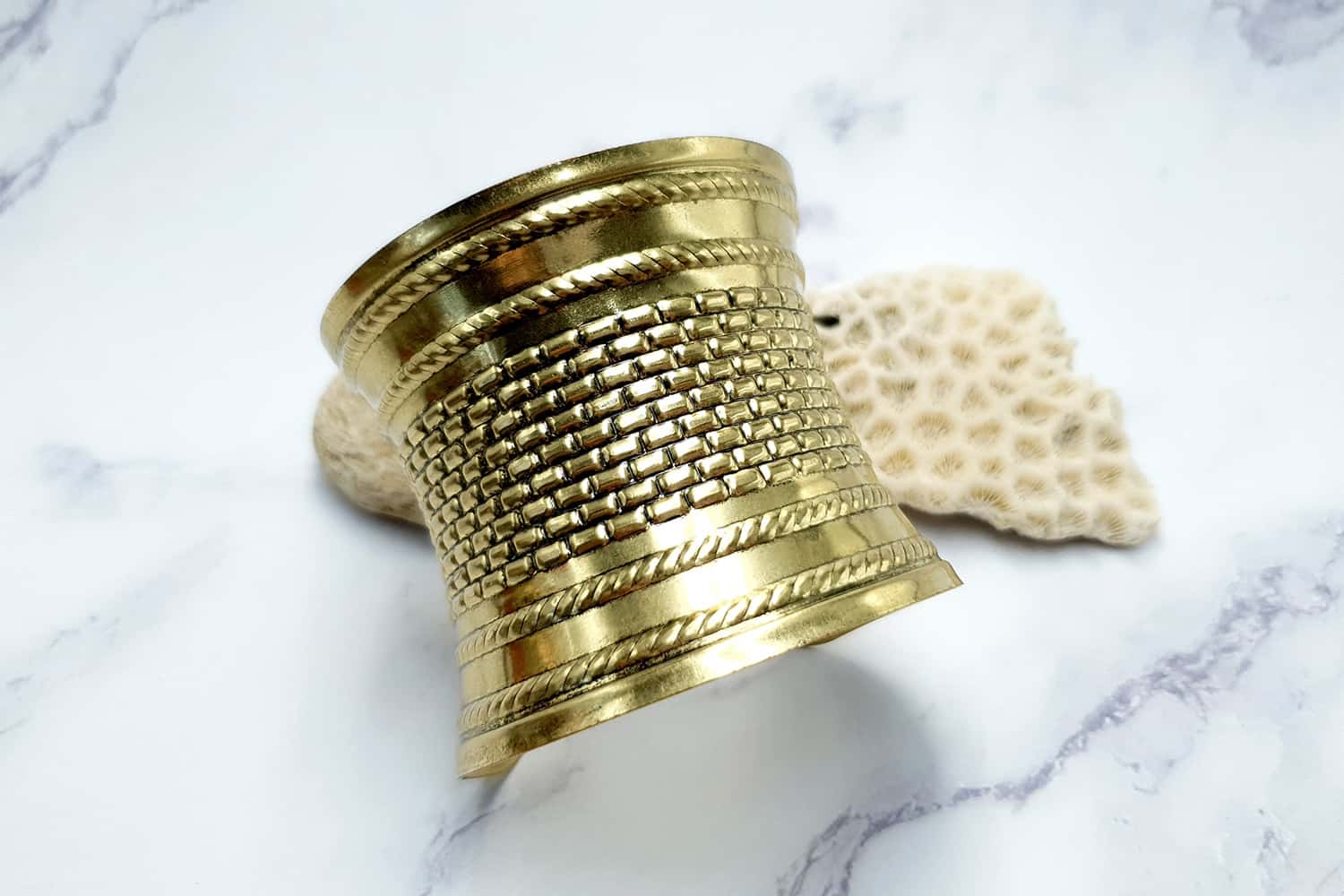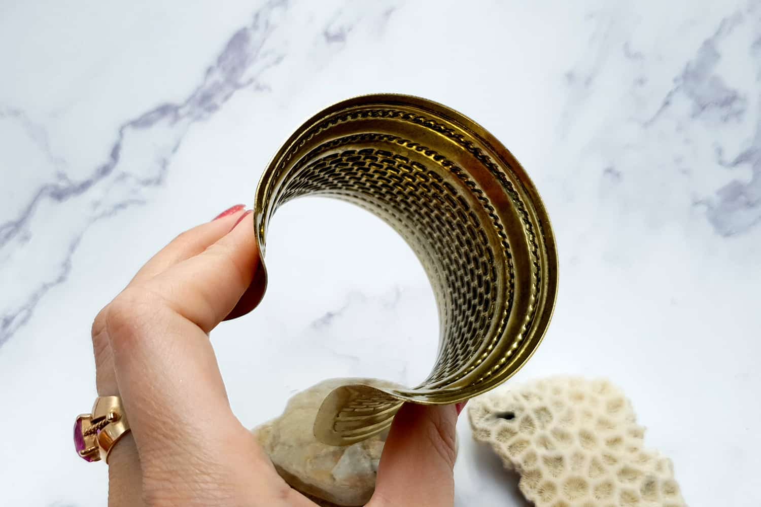 Pulseira – ferramenta base de metal para cozimento de argila de polímero com padrão “Bricks and Ropes” – bronze envelhecido