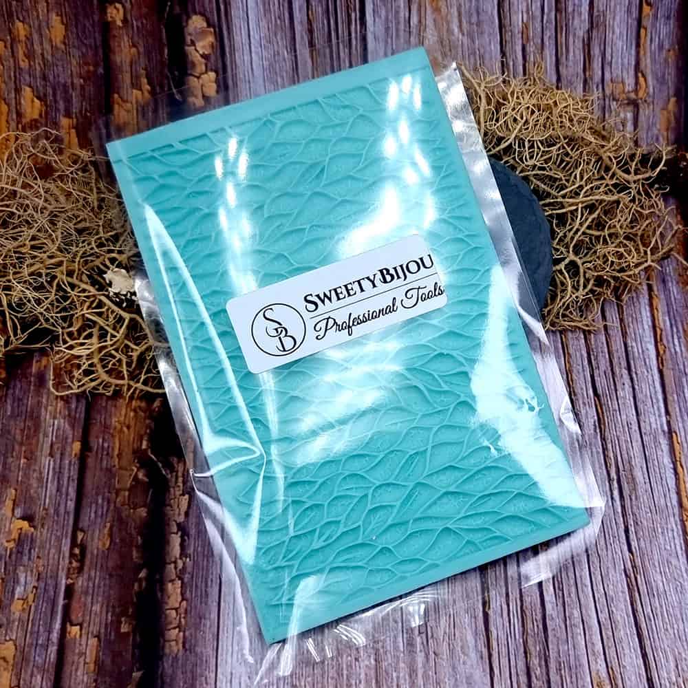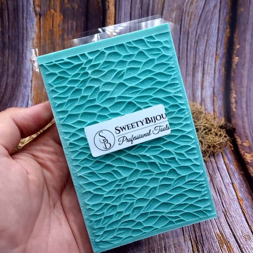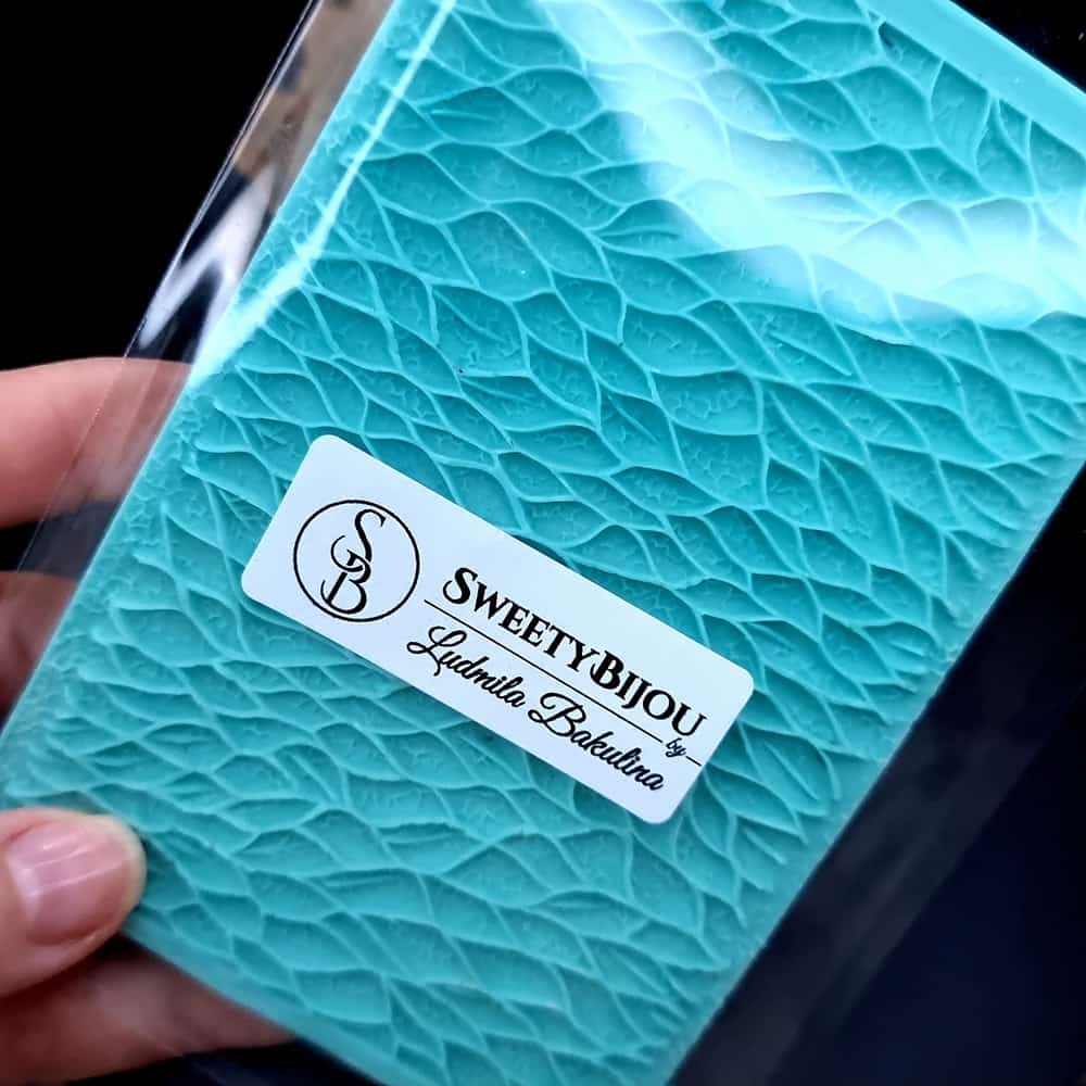 Fiz essa textura de silicone que é flexível e não precisa de desmoldante. Pode ser cozido a uma temperatura de 150'C e pode ser usado com todas as marcas de argila polimérica (recomenda-se de preferência uma argila SOFT).