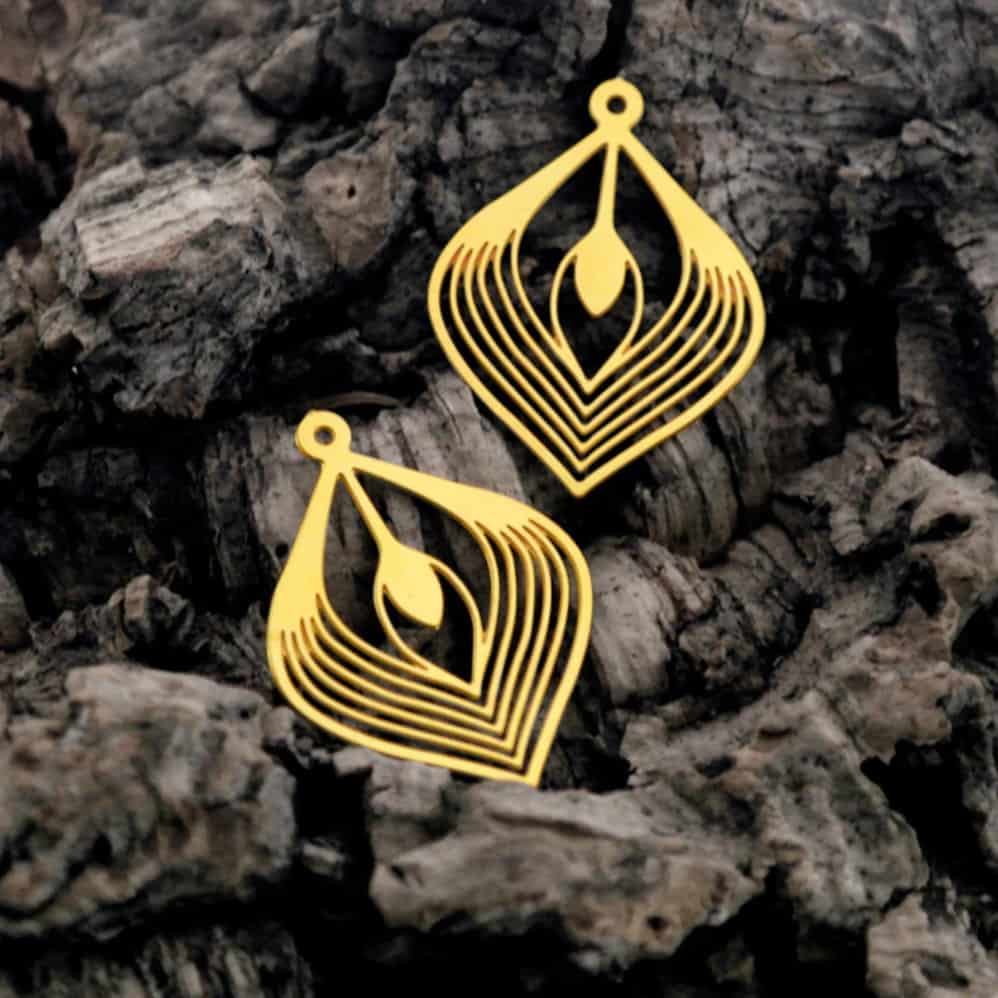4 підвіски з необробленої латуні «Золоте листя» – незвичайні високоякісні сережки для ваших ювелірних творінь.