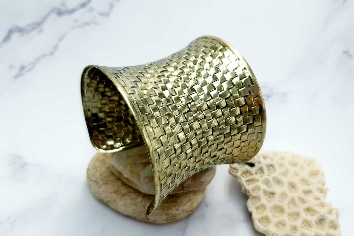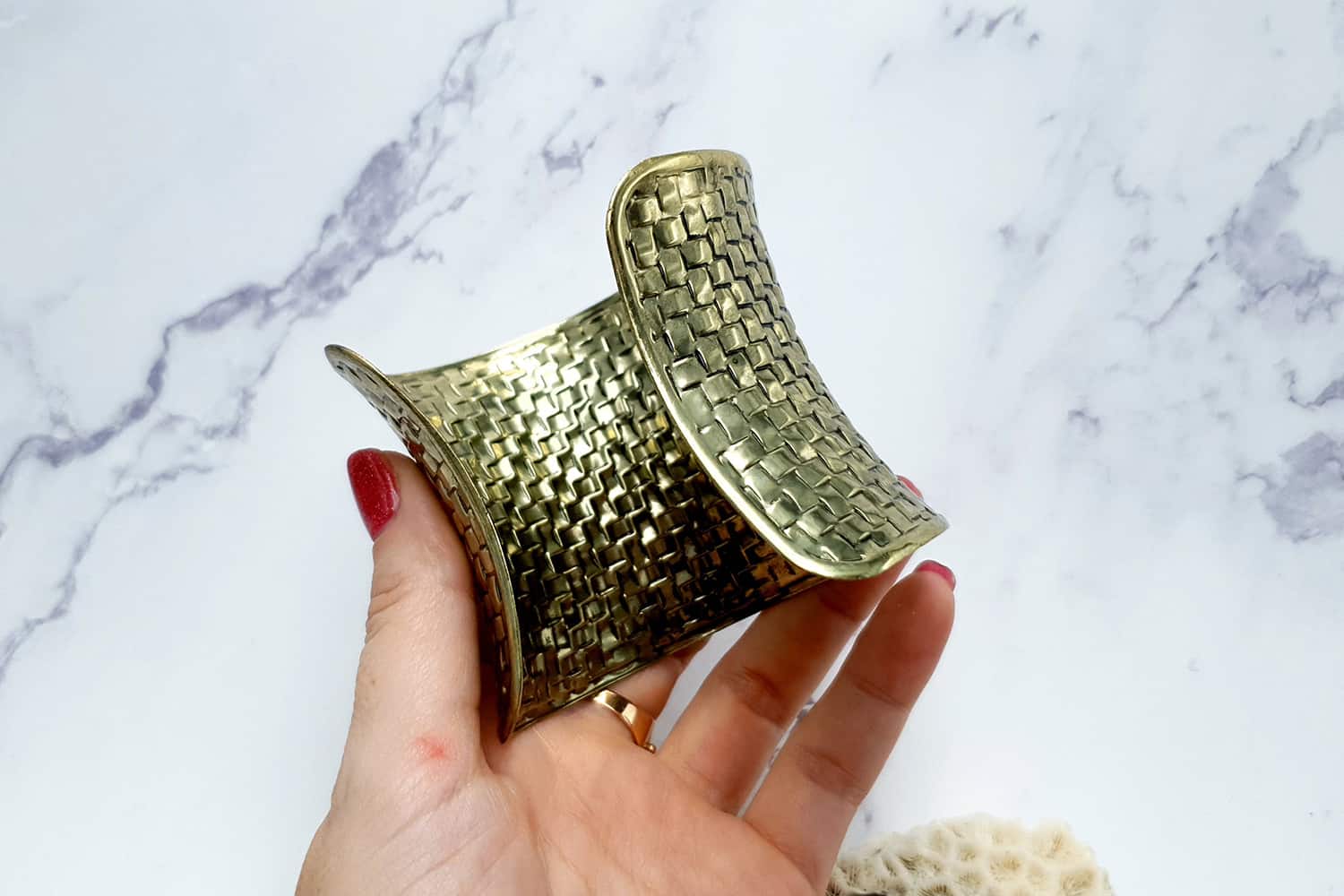 Браслет – металева основа інструменту для запікання полімерної глини з візерунком «Кошик» – зістарена бронза