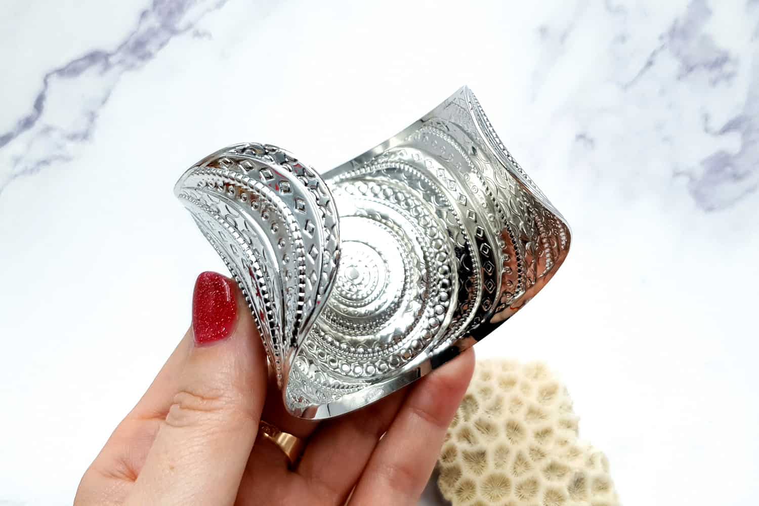 Браслет – металева основа інструменту для запікання полімерної глини з візерунком «Круга» – сріблястого кольору