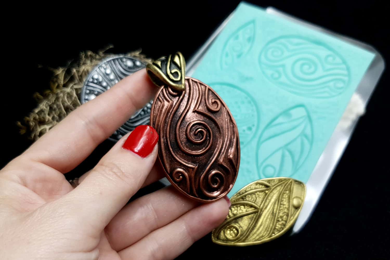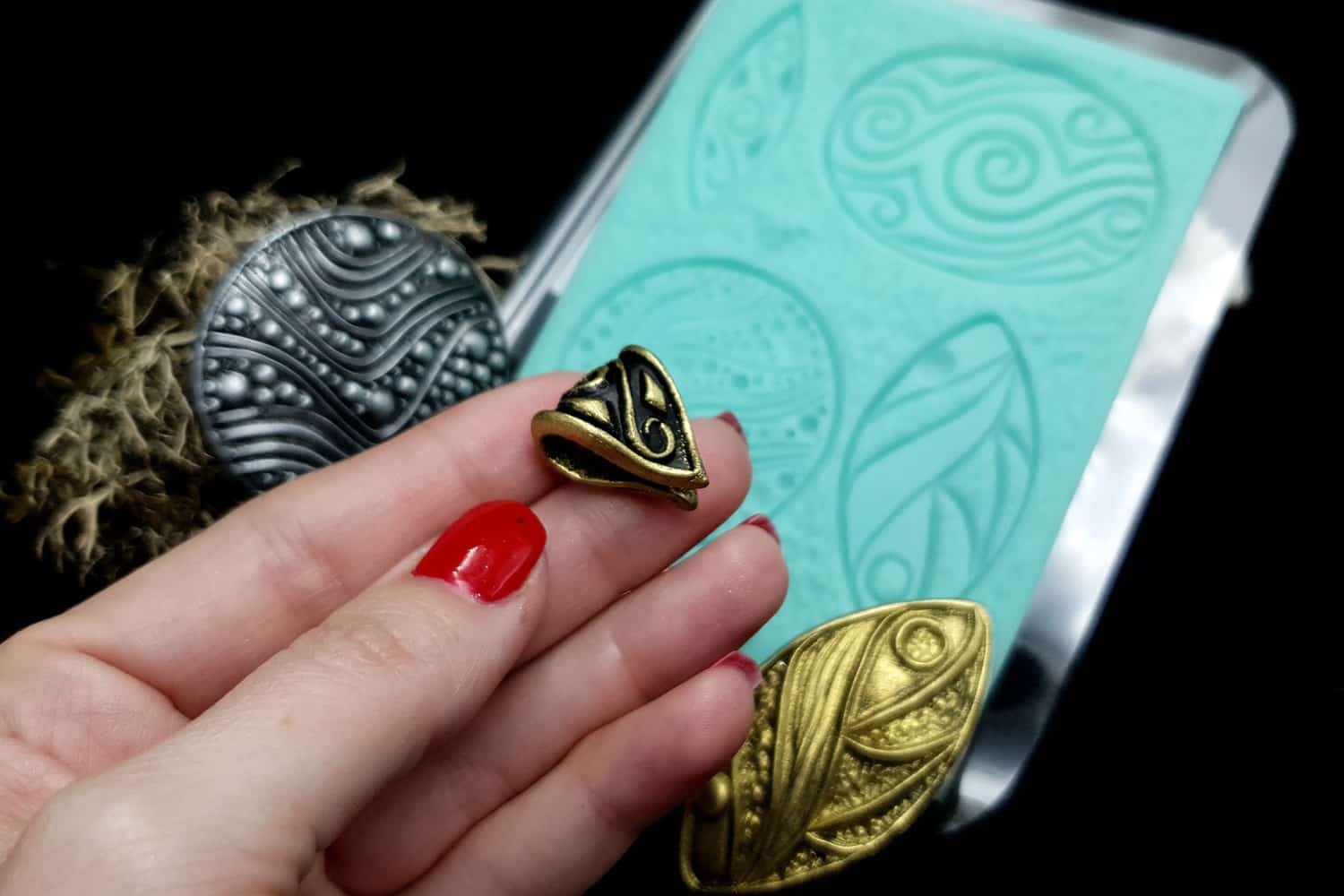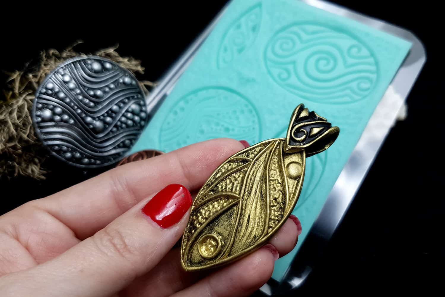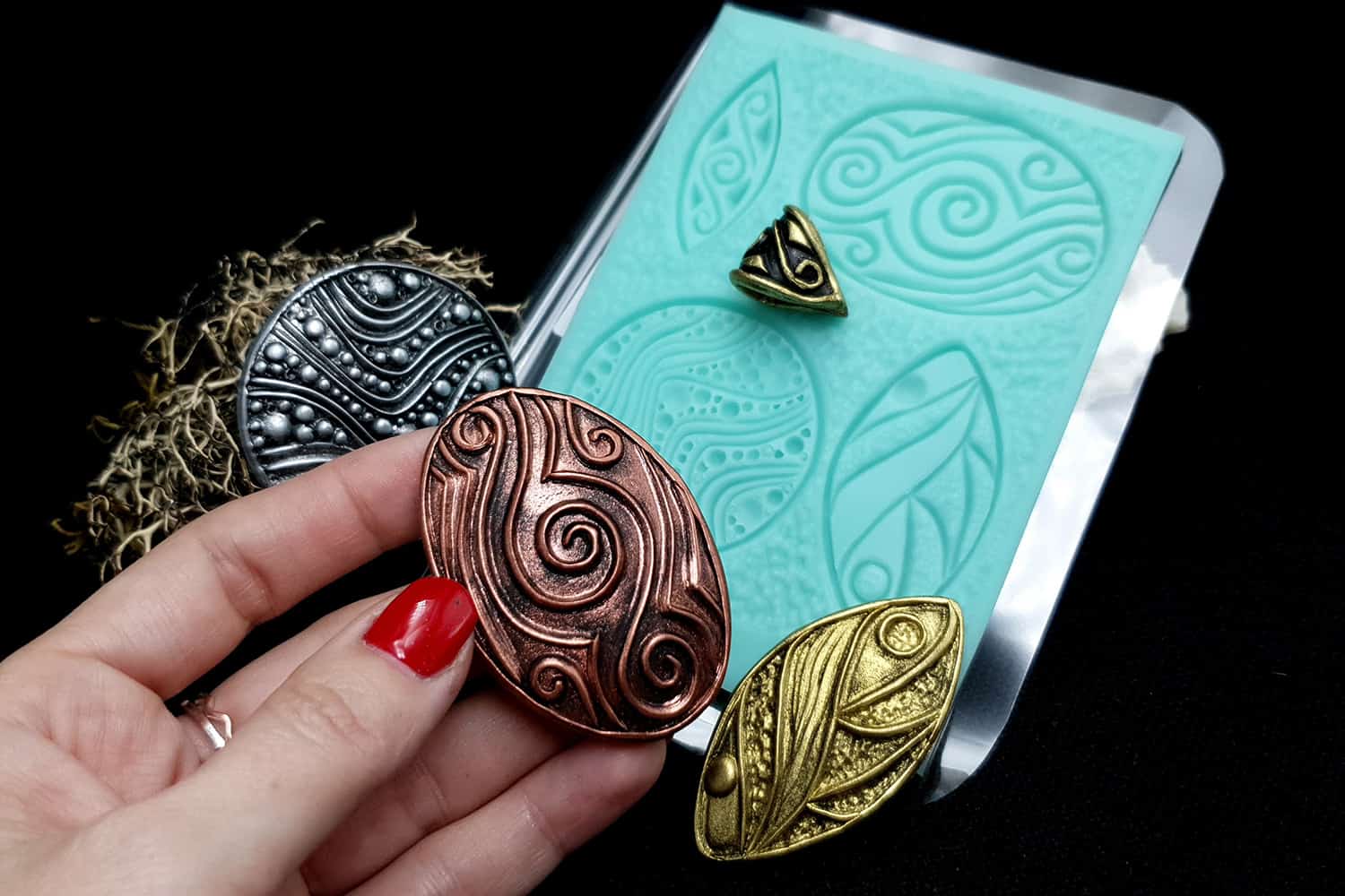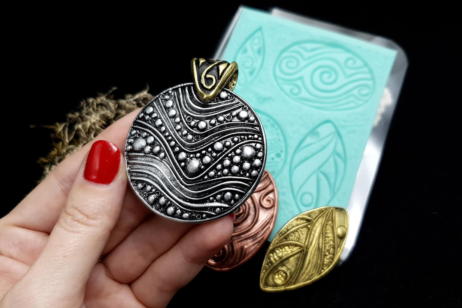 Я зробив цю текстуру з силікону, який є гнучким і не потребує роздільної речовини. Його можна випікати при температурі 150°C і використовувати з усіма марками полімерної глини (бажано рекомендується SOFT).
