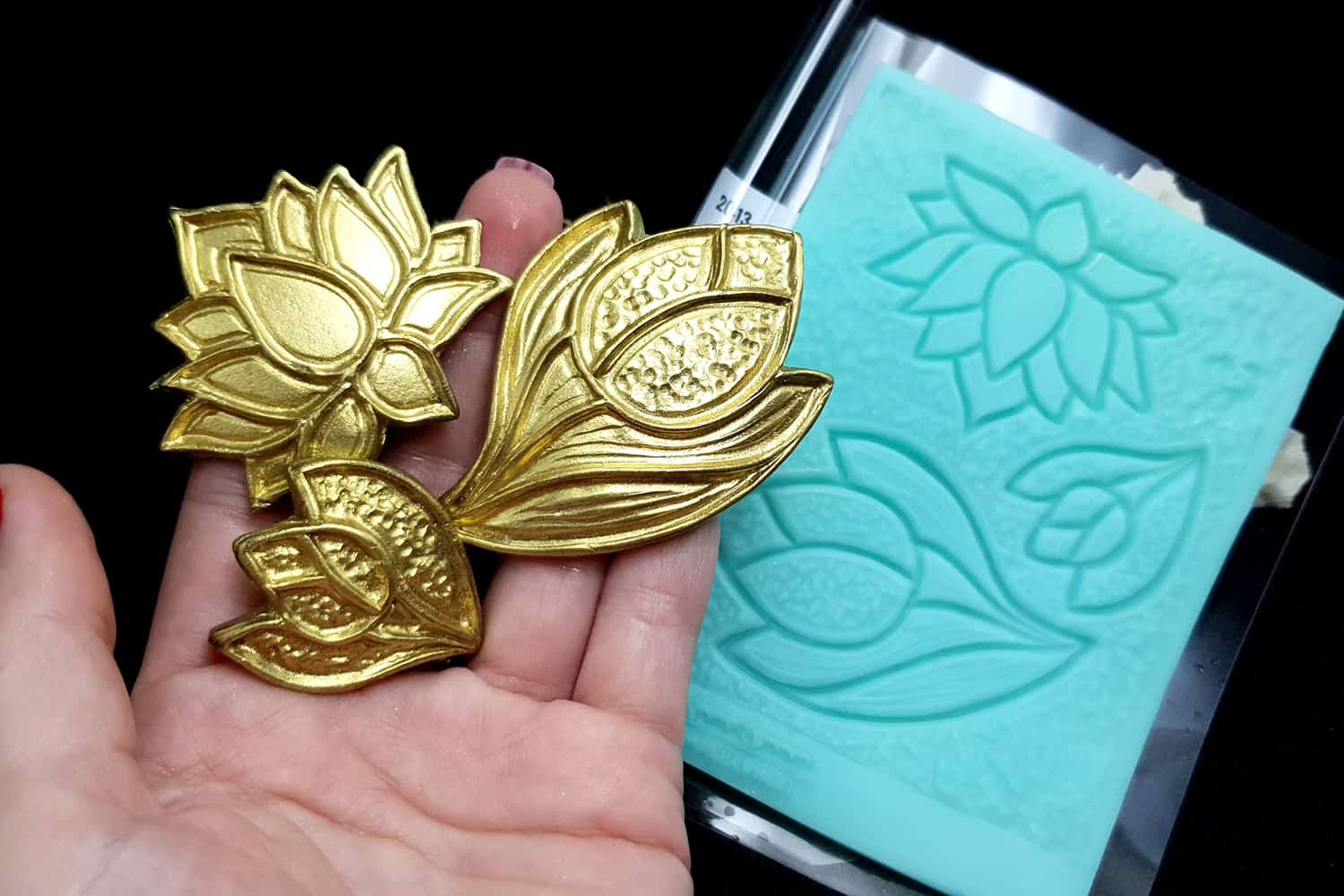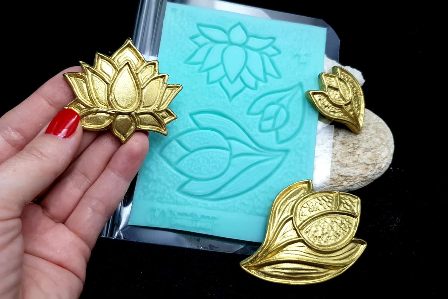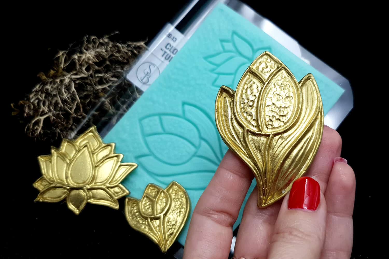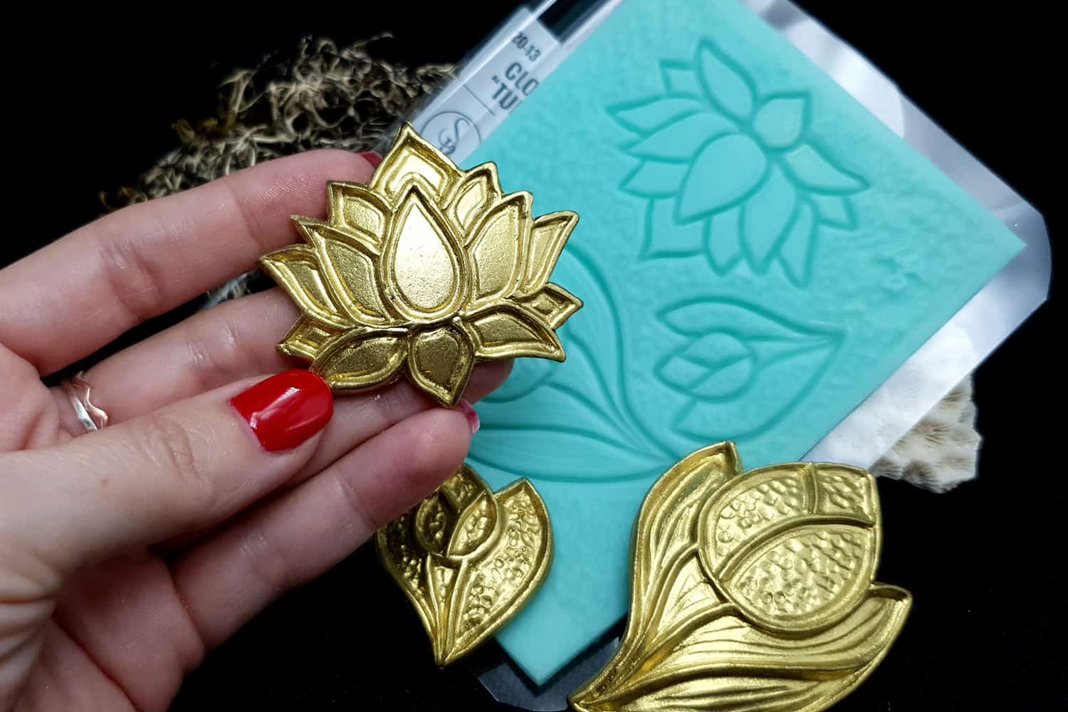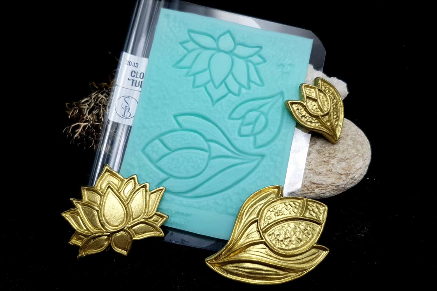 Я зробив цю текстуру з силікону, який є гнучким і не потребує роздільної речовини. Його можна випікати при температурі 150°C і використовувати з усіма марками полімерної глини (бажано рекомендується SOFT).